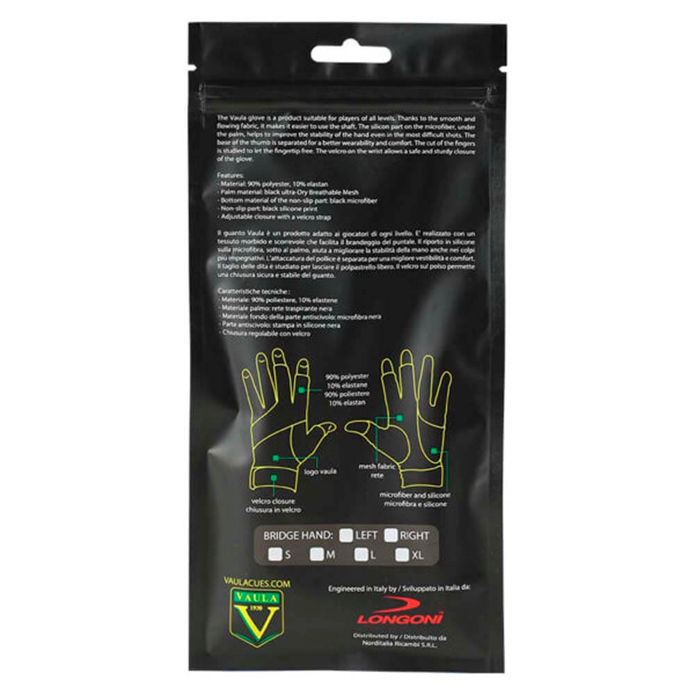 DESCRIPCIÓN:El guante Pro es el modelo tope de gama de la gama Vaula. Totalmente ergonómico, está disponible en diferentes tamaños y es perfecto para jugadores que buscan un producto que se adapte perfectamente a la mano. La superficie extremadamente suave y de baja fricción permite un juego más preciso y continuo, gracias también a la ligereza y comodidad del guante. El tejido transpirable mantiene la mano seca, mientras que la zona de la palma antideslizante garantiza una mayor seguridad incluso en los tiros más difíciles. El cierre de velcro permite un ajuste perfecto en la muñeca sin moverse durante el juego.