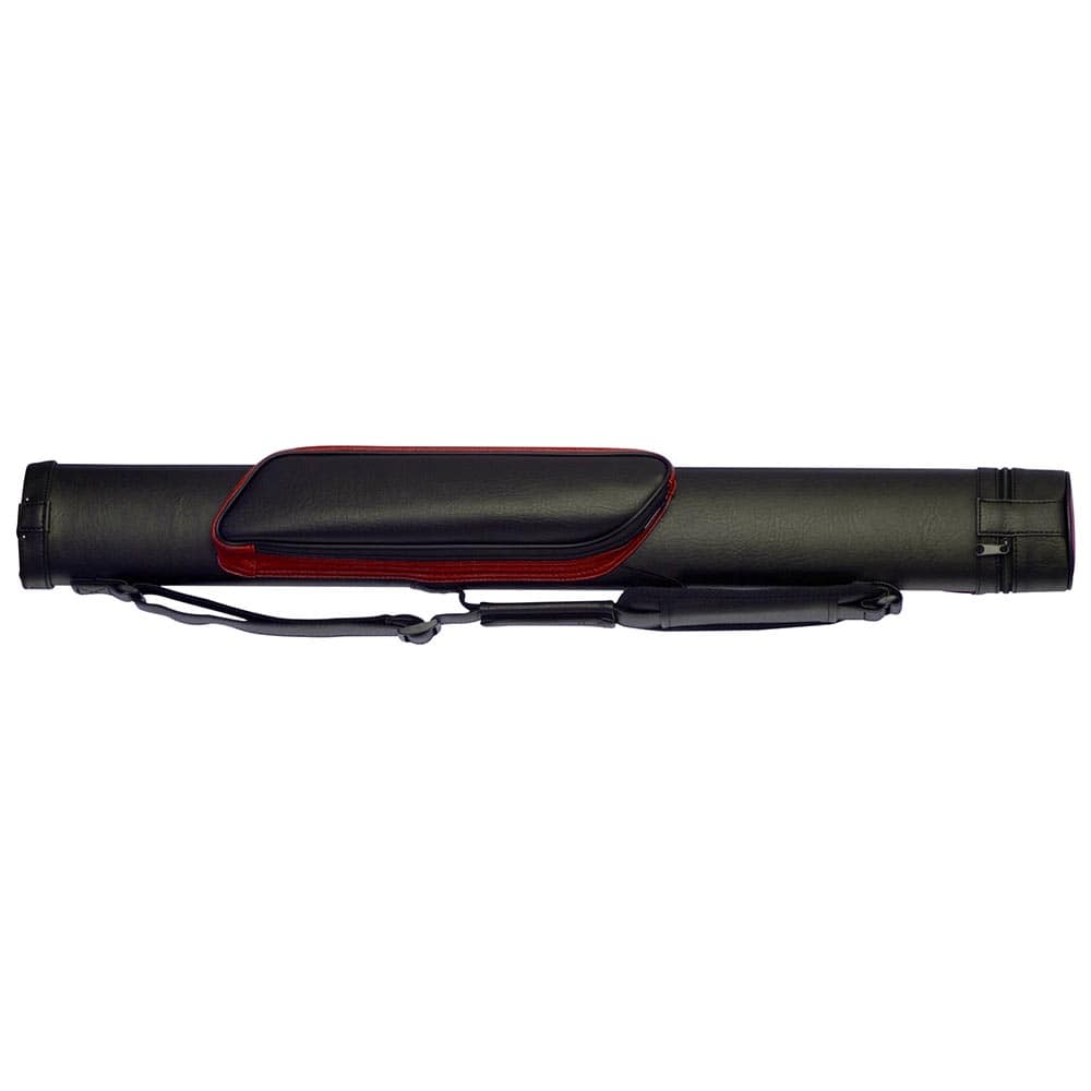 DESCRIPCIÓN:Funda de cuero sintético para taco de billar, con un diseño elegante y acabados de primera calidad en colores negro y rojo. Con capacidad para 2 porras y 2 flechas, con bandolera ajustable y bolsillo XXL para accesorios.