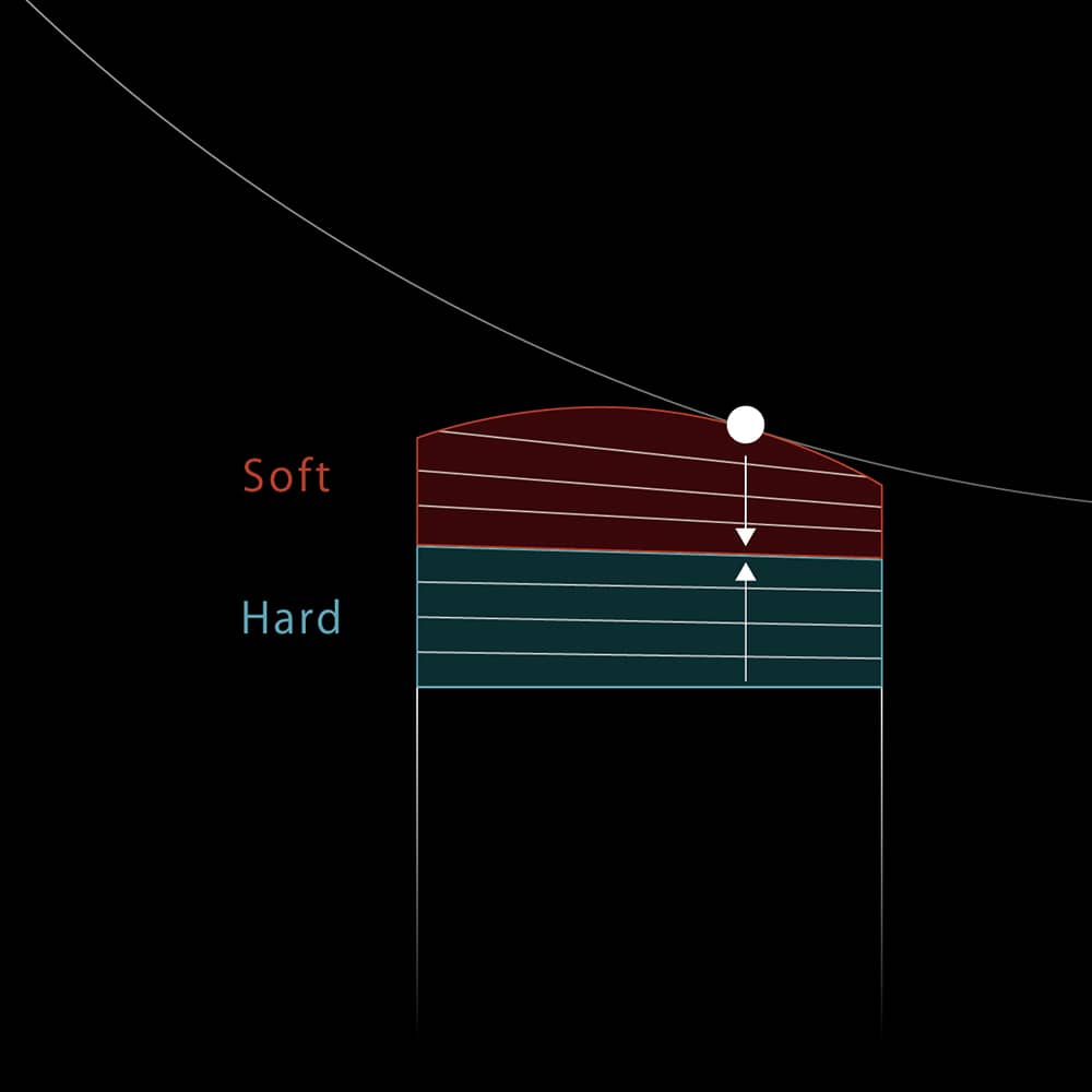 “KAMUI ATHLETE” se ha completado con rigidez para utilizar potencia y elasticidad para permitir un tacto suave superponiendo pieles de diferentes durezas. Durante los tiros, se aplica una gran fuerza a la capa más baja de la punta, que está lejos de la punta. de contacto entre la bola blanca y la punta. Esto permite al usuario beneficiarse de la flexibilidad al golpear el centro de la mano y evitar la pérdida de potencia debido a la rigidez al girar. Como resultado, la punta resalta las características del eje de carbono.