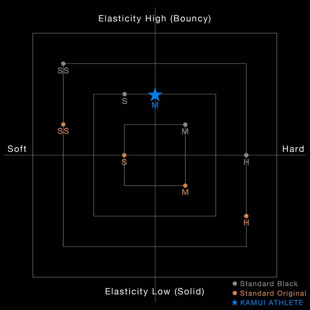 “KAMUI ATHLETE” se ha completado con rigidez para utilizar potencia y elasticidad para permitir un tacto suave superponiendo pieles de diferentes durezas. Durante los tiros, se aplica una gran fuerza a la capa más baja de la punta, que está lejos de la punta. de contacto entre la bola blanca y la punta. Esto permite al usuario beneficiarse de la flexibilidad al golpear el centro de la mano y evitar la pérdida de potencia debido a la rigidez al girar. Como resultado, la punta resalta las características del eje de carbono.