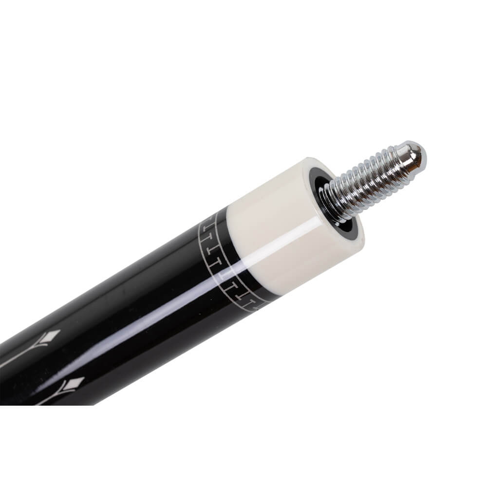 La flecha de arce constituye la sólida base técnica de la serie. Combinada con una punta multicapa de 12,5 mm, permite un golpe limpio y un control preciso de la bola. El revestimiento de lino irlandés blanco y negro proporciona un agarre seguro, mientras que la rosca metálica garantiza una conexión estable.