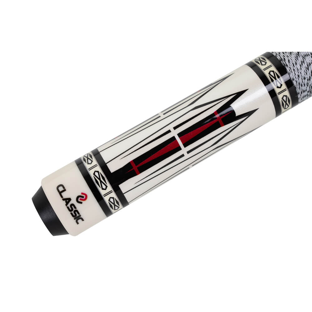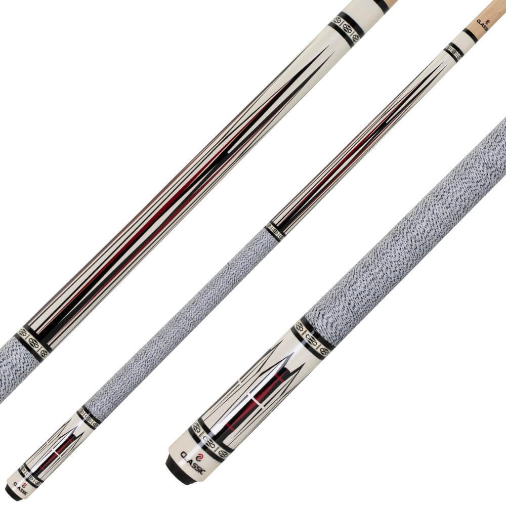 La flecha de arce constituye la sólida base técnica de la serie. Combinada con una punta multicapa de 12,5 mm, permite un golpe limpio y un control preciso de la bola. El revestimiento de lino irlandés blanco y negro proporciona un agarre seguro, mientras que la rosca metálica garantiza una conexión estable.