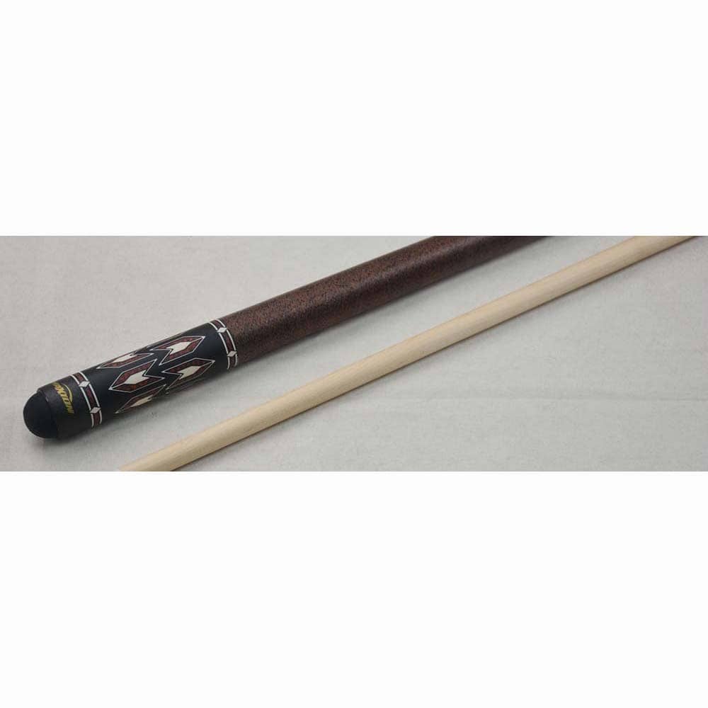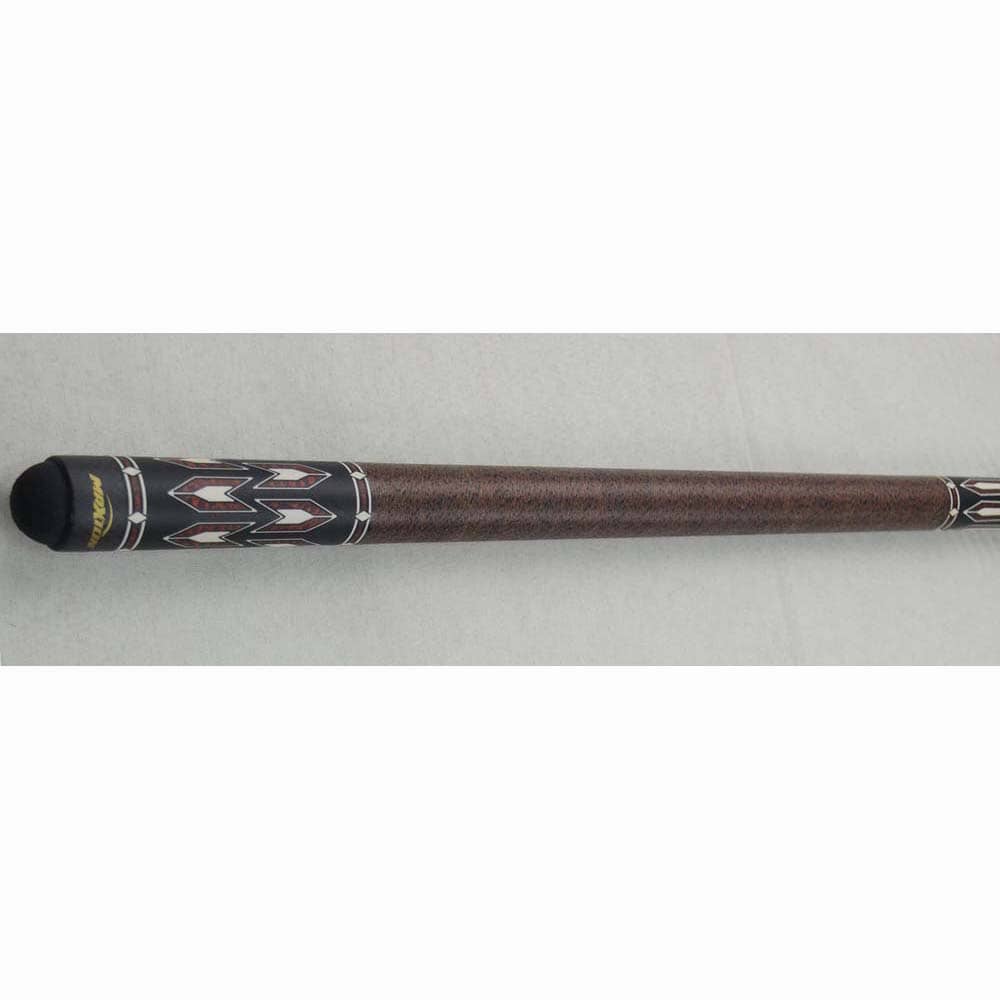 DESCRIPCIÓN:El taco de billar Maxton Mercan número 1 presenta un estampado gráfico UV clásico en blanco y marrón en la culata, debajo y encima de la empuñadura. La empuñadura está hecha de lino moteado negro color café. Todo el taco de billar Mercan tiene un moderno acabado mate. La tapa de la culata del taco de billar Maxton Mercan está hecha de fibra de carbono 3K negra de 19 mm y presenta el logotipo Maxton impreso en color dorado. El taco de billar Mercan de dos piezas tiene una longitud de 147,32 cm; tanto la culata como la flecha tienen una longitud de 73,66 cm. El taco de billar está hecho de arce, la flecha es de grado A7 con un diámetro de 13 mm y está equipada con una punta encolada. El taco de billar Maxton Mercan tiene una virola de fibra de 25 mm, una junta 18T con un collar de junta de fibra de carbono 3K de 25 mm.