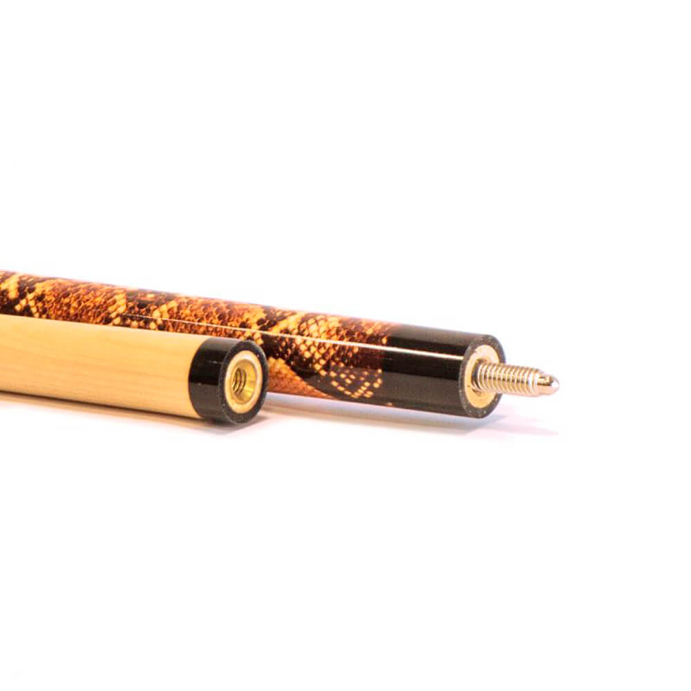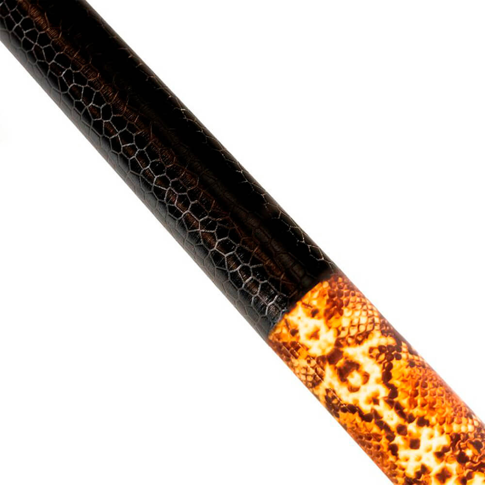 DESCRIPCIÓN:El exquisito diseño de serpiente convierte a este modelo "Snake" en un auténtico punto de atracción. La empuñadura de polipiel granulada negra a juego es agradable al tacto y complementa a la perfección el estilo de serpiente. La tapa negra del talón luce el logotipo original de serpiente. La junta negra a juego conecta la flecha con una precisa rosca de acero de 5/16 x 18. La flecha de arce canadiense de alta calidad está equipada con una punta profesional "Le Professional" de 12 mm. El taco Snake impresiona no solo por su original diseño, sino también por su excelente calidad de juego, todo ello con una excelente relación calidad-precio.