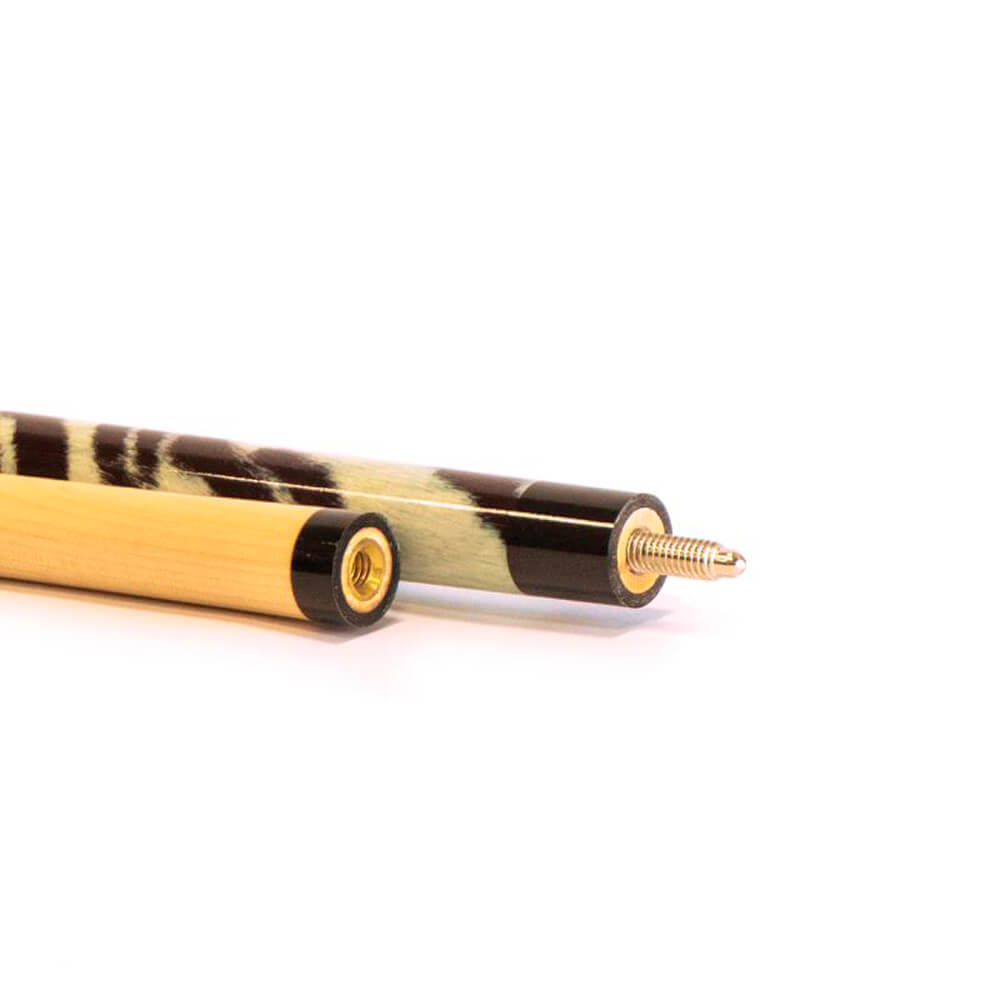 DESCRIPCIÓN:El exquisito diseño de tigre blanco convierte a este modelo "White Tiger" en un auténtico punto de atracción. La empuñadura de polipiel granulada negra a juego es agradable al tacto y complementa a la perfección el estilo de tigre. La tapa negra del talón luce el logotipo original de tigre. La junta negra a juego conecta la flecha con una precisa rosca de acero de 5/16 x 18. La flecha de arce canadiense de alta calidad está equipada con una punta profesional "Le Professional" de 12 mm. El taco White Tiguer impresiona no solo por su original diseño, sino también por su excelente calidad de juego, todo ello con una excelente relación calidad-precio.