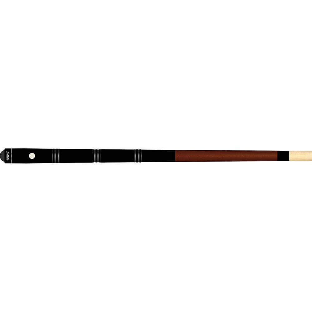 DESCRIPCIÓN:El taco de billar Buffalo Excellent 1 tiene un moderno acabado mate. La parte superior de la culata de arce está pintada de azul metálico y la parte inferior está pintada de negro. El taco de billar Excellent 2 piezas tiene una longitud total de 141 cm y una varilla Buffalo Pro de arce macizo (A7) con el logo de Buffalo. La punta tiene un diámetro de 11 mm aprox. Además, el peso se puede ajustar mediante el sistema de pesas M16*2.0. El taco está equipado con una virola de PC de 13 mm y una junta de madera con un collarín de plástico negro de 25 mm.