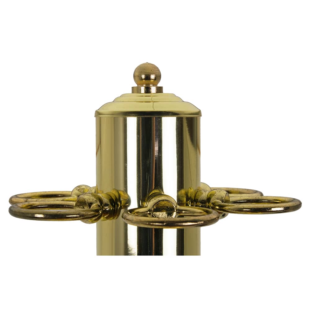 Excelente taquera de pie con capacidad de hasta 6 tacos, fabricada en latón, esta taquera es ideal para ubicar en cualquier zona de tu sala de juegos de billar ya que al ser de pie es muy fácil y cómoda de cambiar de sitio para tenerla siempre a mano.