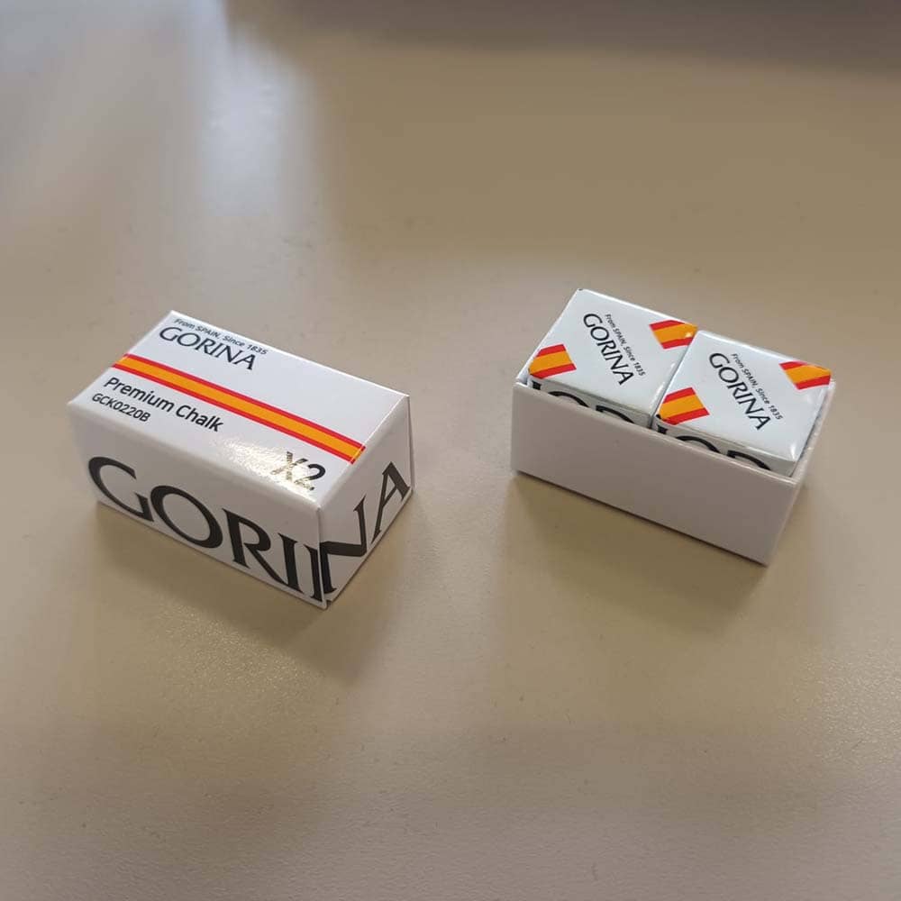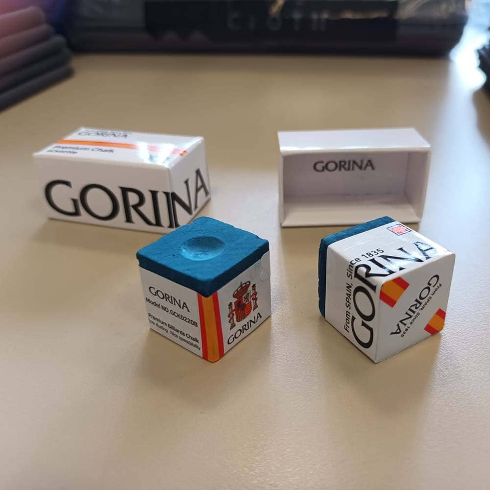 Tiza para tacos de billar de gama alta, fabricada por la prestigiosa marca de paños Gorina.