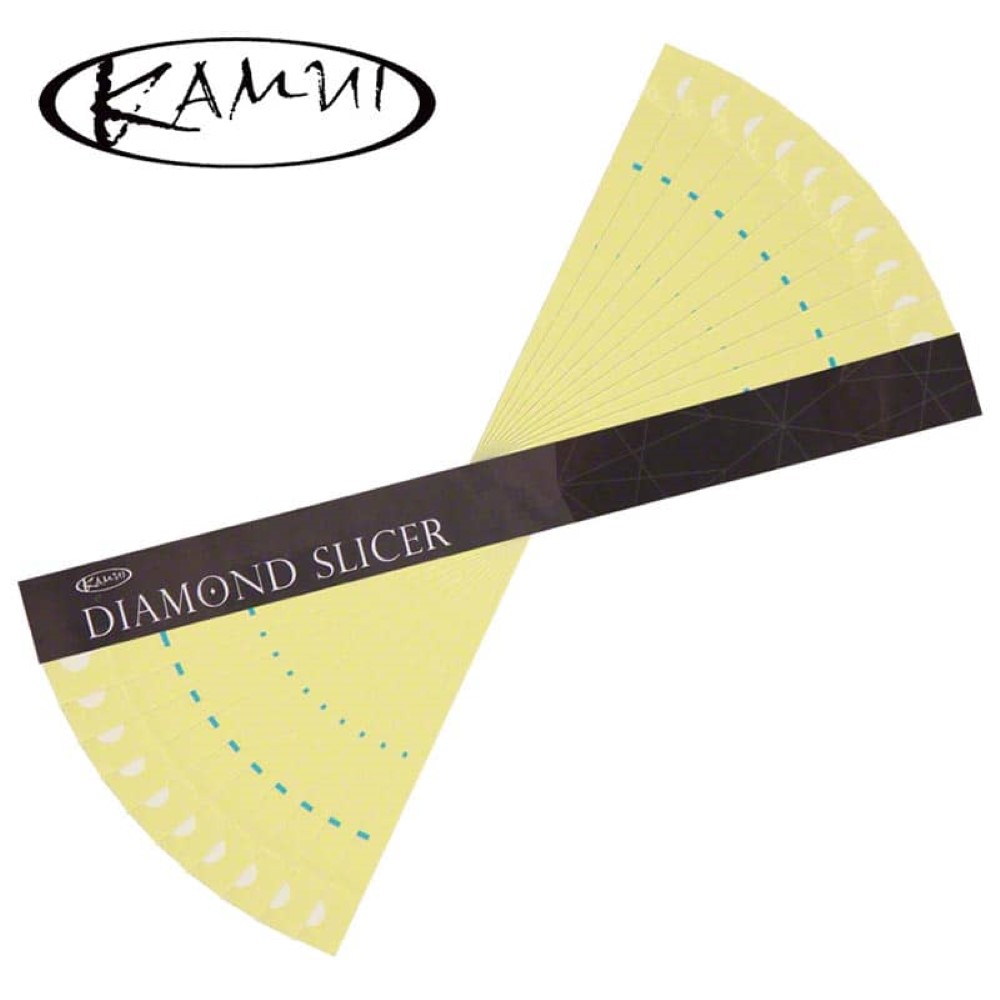 Simplemente retire la parte trasera de una pegatina a la vez y conecte cada diamante alrededor de la mesa. Recorte el exceso de adhesivo donde quiera que el adhesivo sobresalga. Las pegatinas Kamui Diamond Slicer no están diseñadas para ser reposicionables, ¡así que ten cuidado!