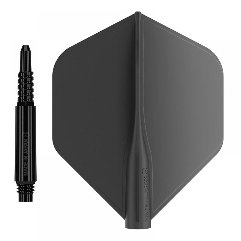 1 x Cañas Shaft 8 Flights Black Regular Fixed 19.0mm Set 3 Unid.