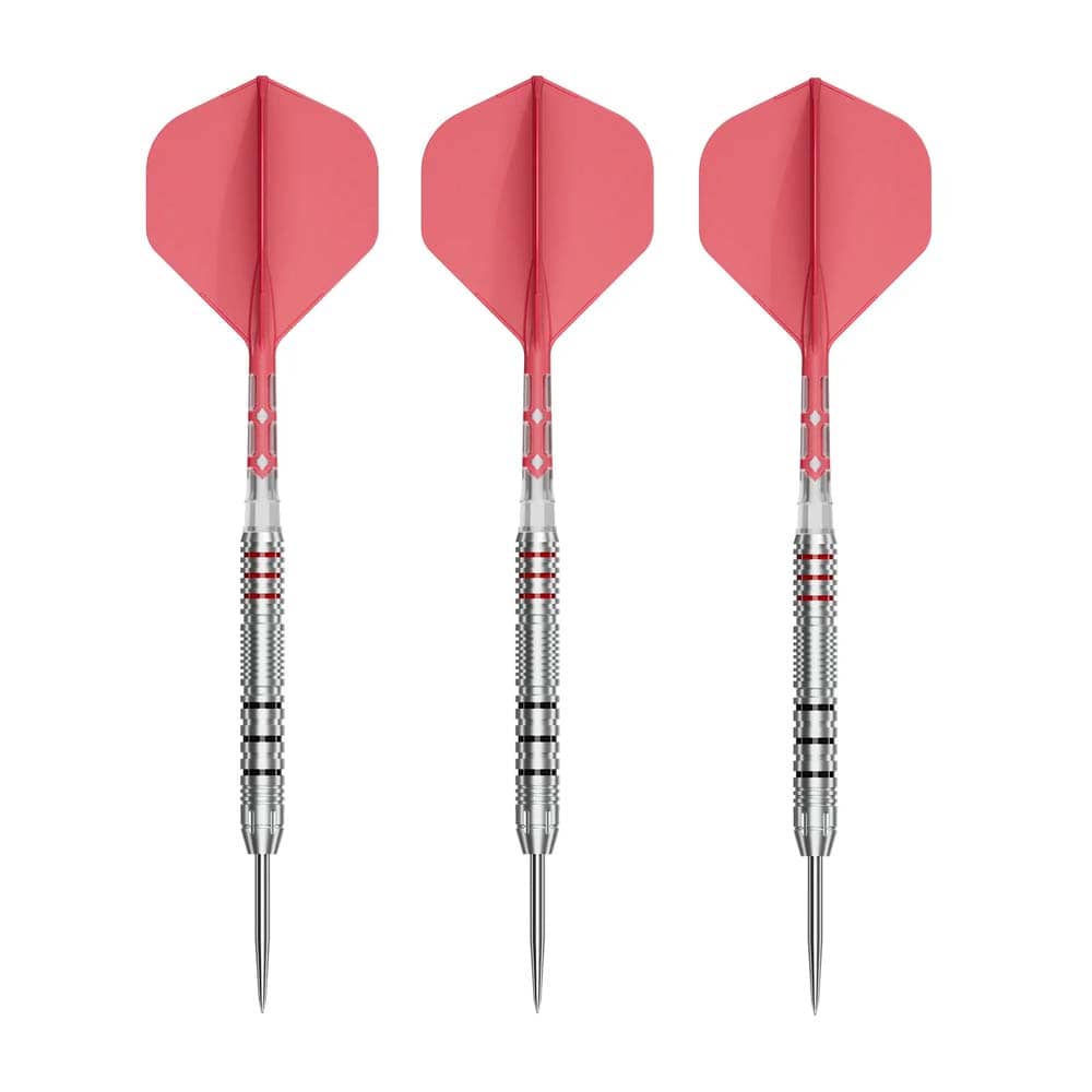 El dardo viene con plumas ROST T19 (forma estándar grande, tamaño M, proporciona la máxima sustentación y la mayor estabilidad en vuelo).