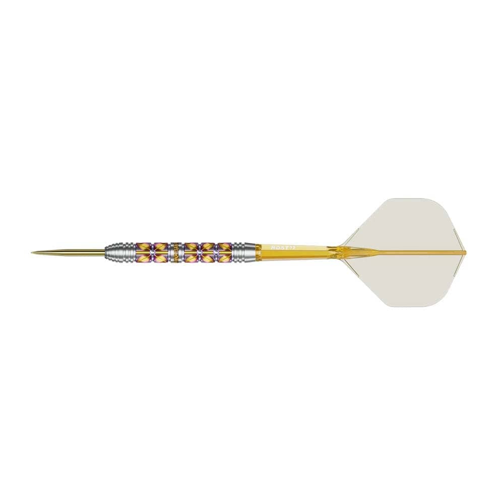El dardo viene con plumas ROST 77 (forma estándar grande, tamaño M, proporciona la máxima sustentación y la mayor estabilidad en vuelo).