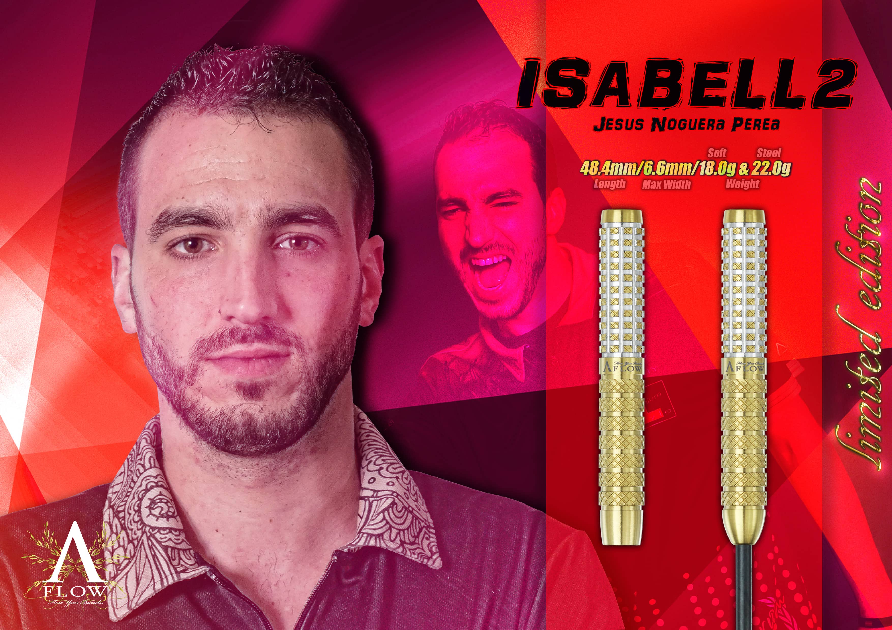 DESCRIPCIÓN:Dardos de gran calidad de la serie A Flow modelo Isabell 2 Gold, diseñados por el jugador español Dynasty Jesus Noguera Perea. Dardos fabricados por Dynasty en Japon con materiales de primera calidad y con un 90% de tungsteno.