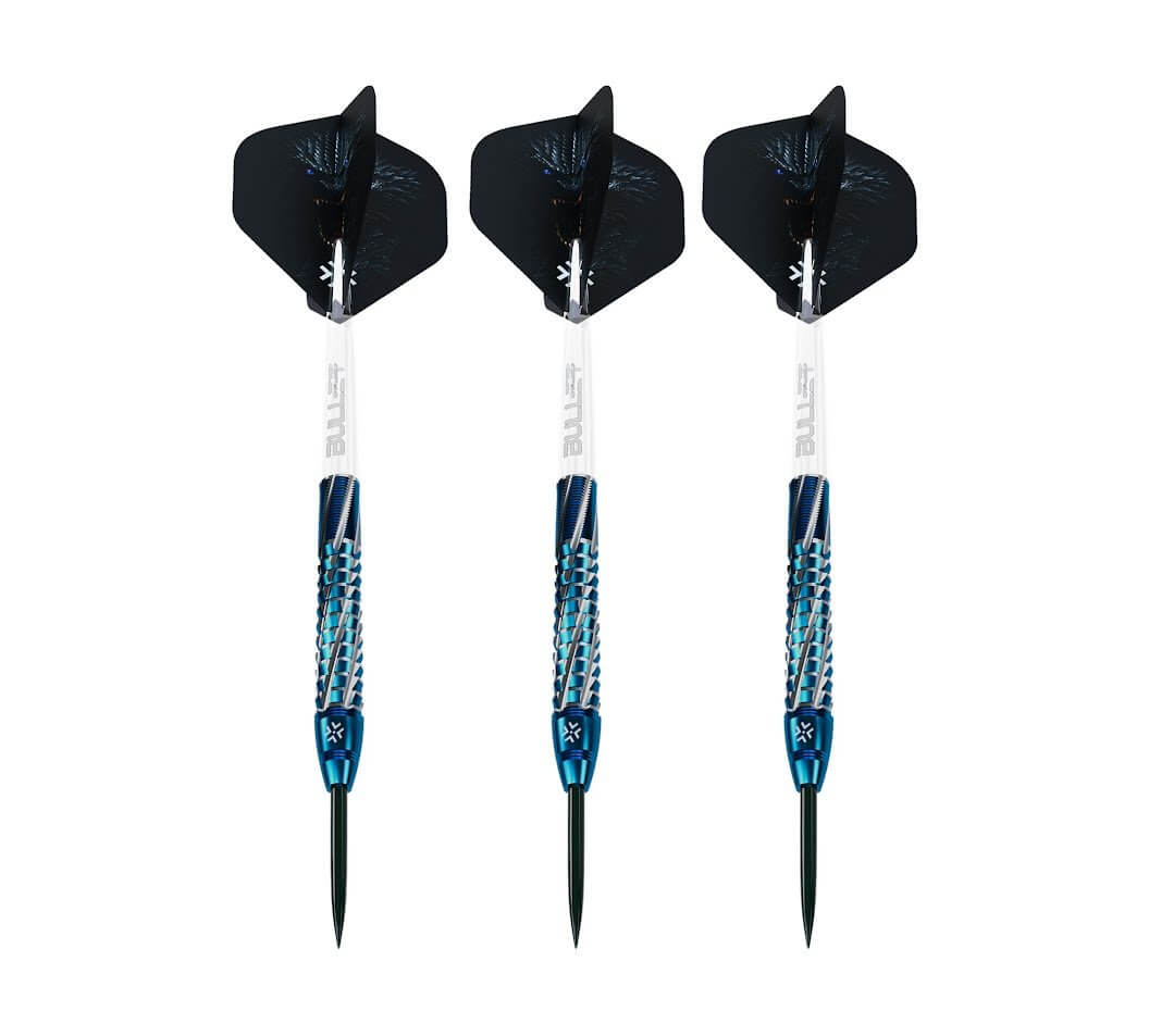 Las flechas Bullet Hydra con acabado en azul, plata y blanco que hace de el un dardos atractivo y elegante. Los barrels están equilibrados con peso front-loaded, lo que significa que el peso se concentra más hacia la punta. Esto ayuda a un lanzamiento estable y hace que los dardos se queden mejor clavados en el tablero. Ideal para jugadores que valoran la precisión y el control. En resumen, con las flechas Bullet Hydra 95% tungsteno.