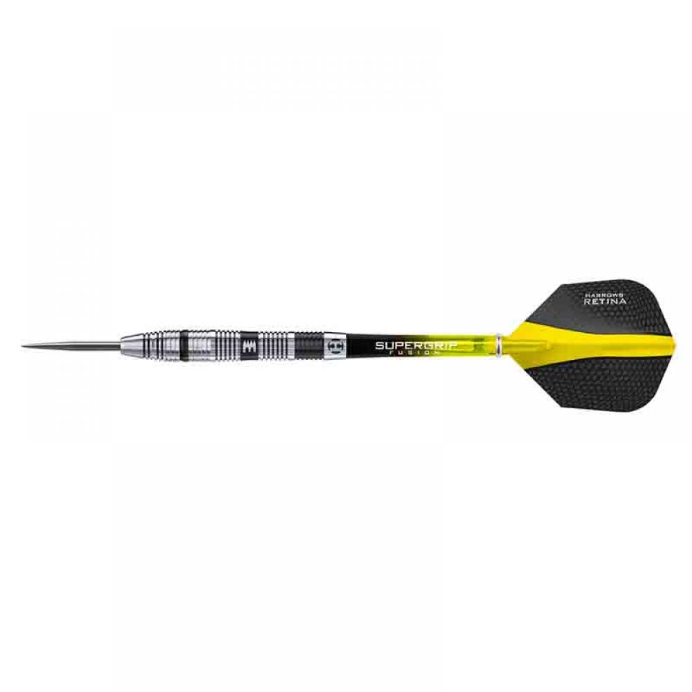 El pack se compone por 1 set de dardos compuesto por 3 dardos Elite de 21g, 1 set de cañas compuesto por 3 cañas Supergrip y set de plumas compuesto por 3 plumas Harrows Retina Yellow