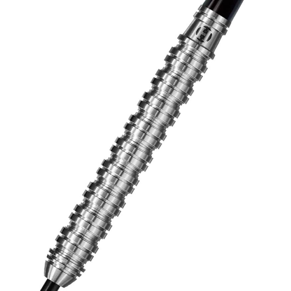 Dardos con un cuerpo recto, con agarre anillado doble y separación de del tamaño de dos anillos entre ellos, este cuerpo está acabado en color tungsteno natural y es un dardos muy completo y muy estable que creemos que a la mayoría de jugadores les aportará una sensación de juego muy buena y un excelente tacto.