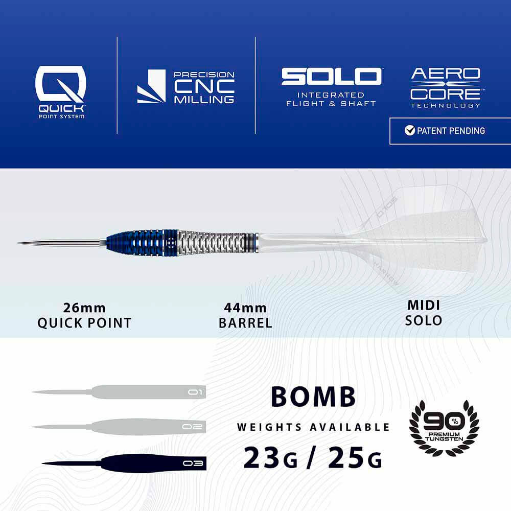 La innovación va más allá del cañón. Cada juego de dardos Geo incorpora la tecnología Quick Point, que permite a los jugadores personalizar la longitud de la punta en segundos y adaptar su configuración para una máxima confianza en el oche. Los dardos Geo también se combinan con nuestras nuevas plumas integradas Midi Solo, con tecnología Aero Core: una microtextura en la zona central de la pluma reduce la turbulencia y mejora la estabilidad, mientras que las suaves alas exteriores minimizan la resistencia para mantener la velocidad y una precisión milimétrica.