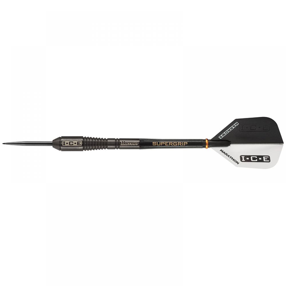 El juego de dardos se compone por 1 juego de 3 cuerpos I.C.E Black 23g Harrows Darts, 1 juego de 3 cañas super grip, 1 juegos 3 plumas Harrows Darts.