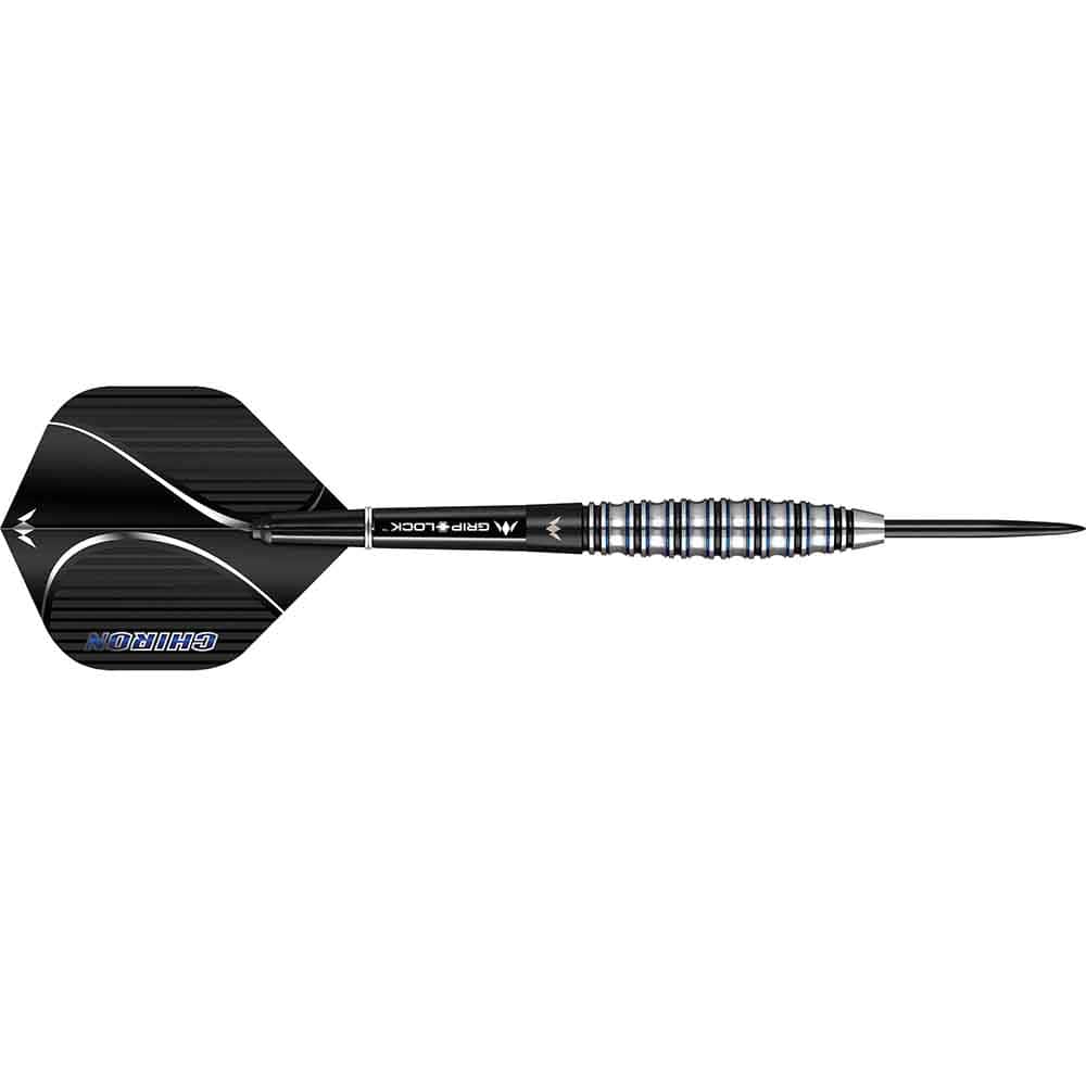 DESCRIPCIÓN:Dardos de tungsteno con punta de acero Mission Chiron - 90% tungsteno. Características: 90 % barriles de tungsteno, colores eléctricos: 1 juego de plumas de misión, 1 juego de ejes de misión con anillos S-Lock, protector de puntas. Dardos Mission Chiron - Punta de acero - M2 - Electro Black & Blue