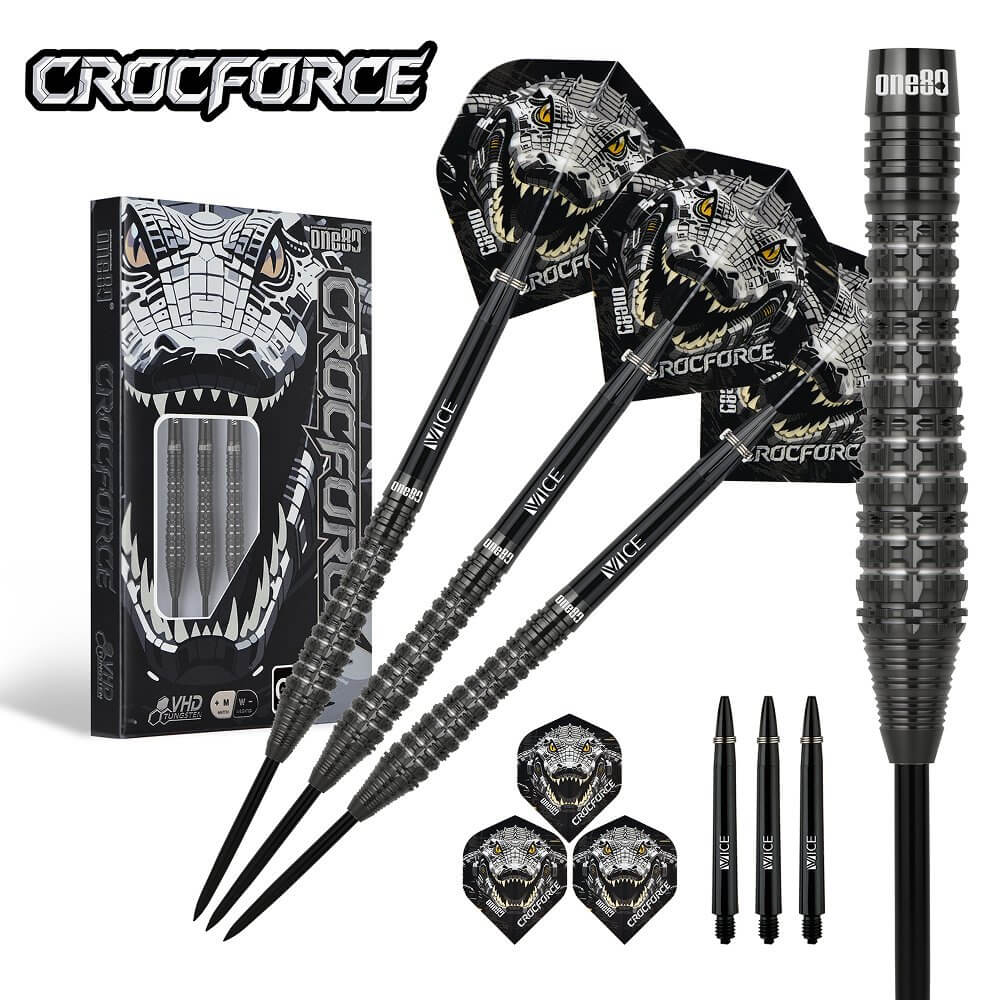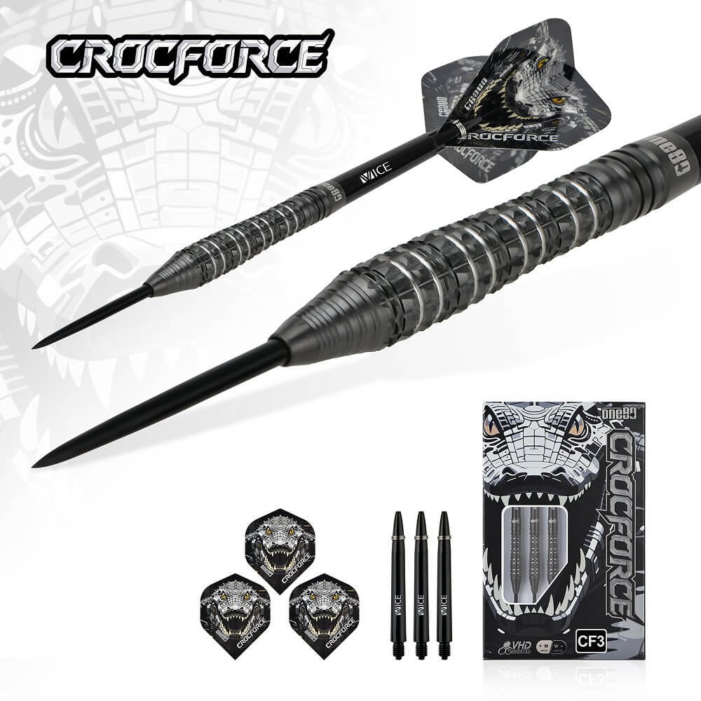 El juego de dardos Crocforce CF3 se compone por 1 set de 3 cuerpos, 1 set de 3 cañas , 1 set de 3 plumas y 1 set de 3 puntas 2ba.
