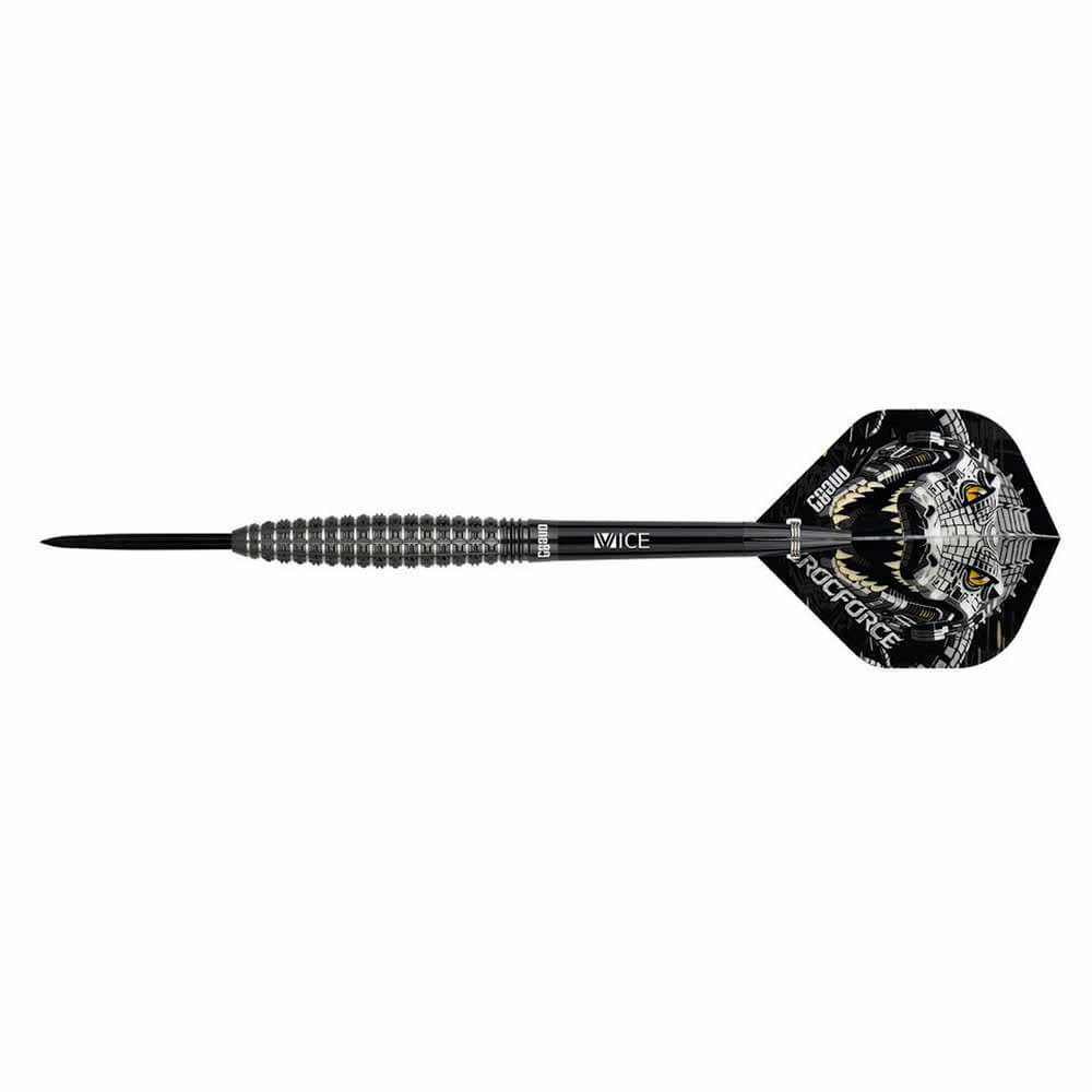 DESCRIPCIÓN:Dardos fabricados por One 80 modelo Crocforce CF4 , dardos de gran calidad con un excelente agarre todo ello acabado en color negro con detalles en los anillos de agarre en color plata.