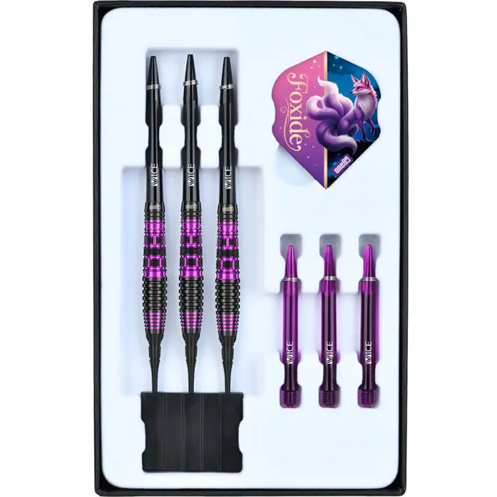 DESCRIPCIÓN:Los dardos ONE80 Foxide F2 90% son la opción ideal para jugadores ambiciosos que valoran la calidad y la precisión. Con un 90% de tungsteno, estos dardos ofrecen máxima durabilidad y un diseño elegante y profesional. Su llamativo acabado en negro y morado garantiza visibilidad y estilo en la diana. El diseño de barril con la punta más ovalada combina zonas de agarre fresadas y anilladas para una sujeción óptima sin una textura de superficie agresiva.