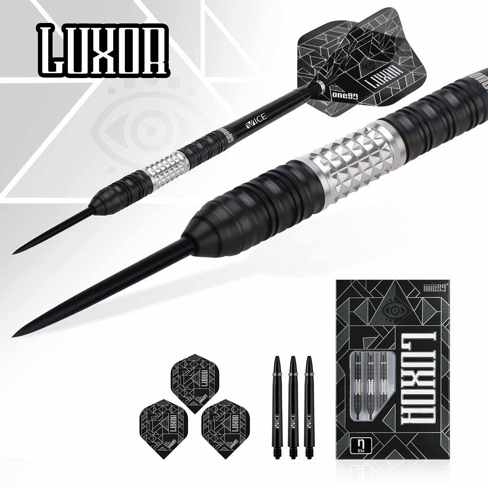 DESCRIPCIÓN:Dardos fabricados por One 80 modelo Luxor Eta ahora en su versio II, dardos de gran calidad con un acabado increible gracias a su acabado en negro y plata todo ello con un tacto excelente.