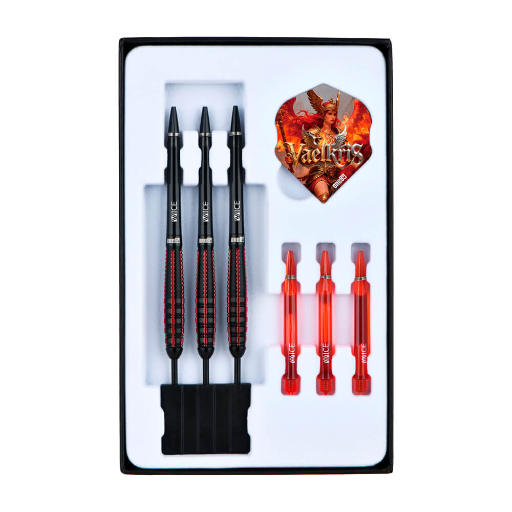 El juego de dardos Vaelkris V05 se compone por 1 set de 3 cuerpos, 1 set de 3 cañas y 1 set de 3 plumas