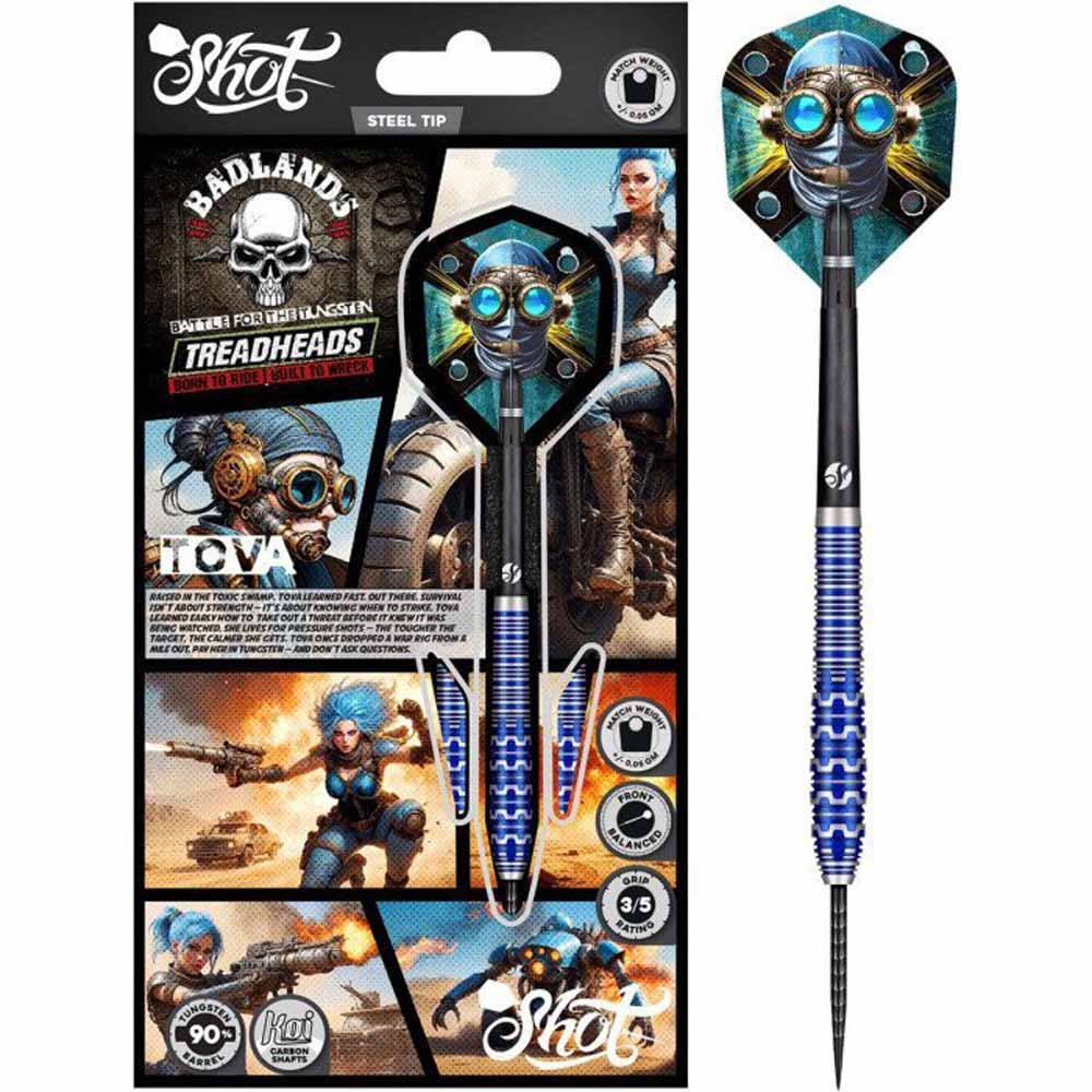 El dardos se compone por 1 ser de 3 cuerpos Badlands Tova con punta de acero, 1 ser de 3 cañas Shot y 1 set de 3 plumas Shot.