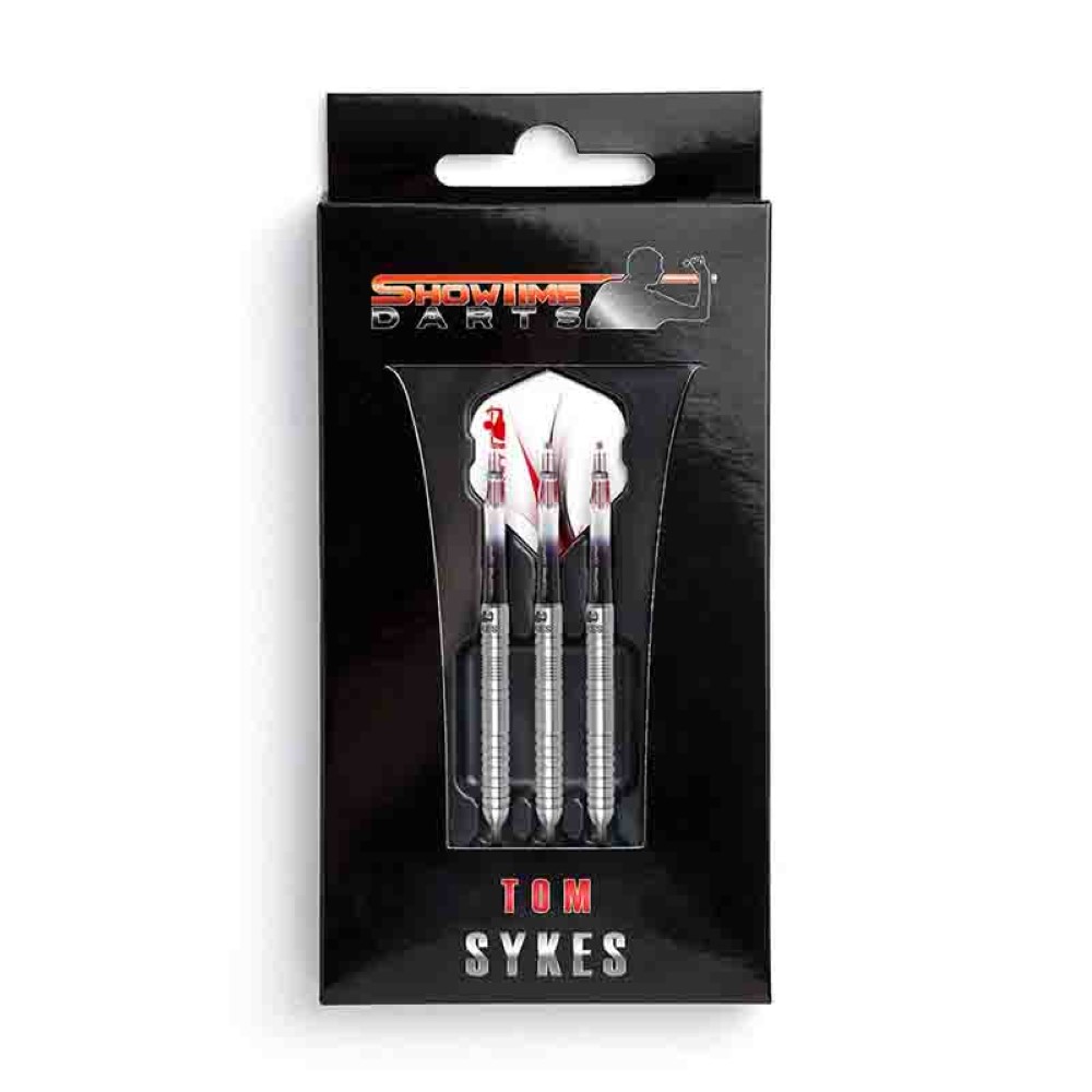 El set se compone por 3 cuerpos de dardos Rom Sykes, set de 3 cañas y set 3 plumas Showtime Darts