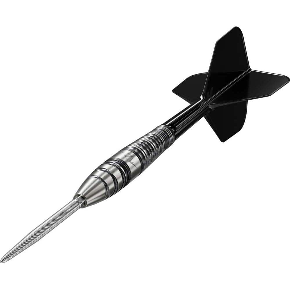 El juego de dardos se compone por 1 set de 3 cuerpos Target Japan Black Marque PW 2.0 con punta de acero Target Swiss, y 1 set de 3 plumas K-Flex Target Japan.