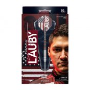 El dardo viene completo con puntas plateadas estándar, cañas Pro Grip negras y plumas exclusivas de Lauby.