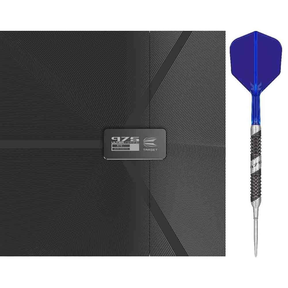 El juego de dardos se compone por 1 set de 3 cuerpos 975 Ultra Marine, 1 set de 3 cañas , 1 set de 3 plumas Target y 1 set de 3 puntas Swiss Point.