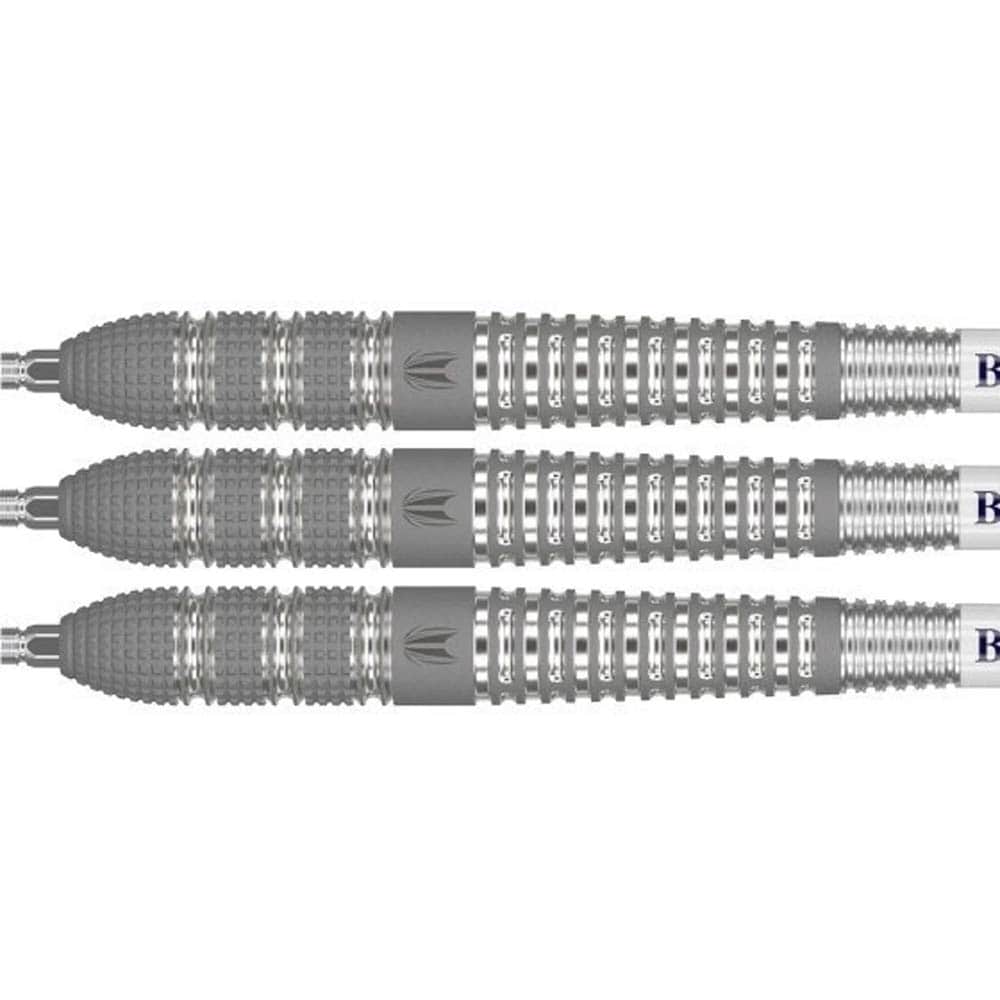 Fabricado en 95 % tungsteno con una distribución de peso y equilibrio superiores en un elegante perfil de cañón sin comprometer el peso para una ventaja verdaderamente competitiva. El agarre excepcional presenta una combinación de ranuras radiales cortadas con precisión y cortes fresados ??por CNC para mejorar su juego de dardos con una precisión constante.