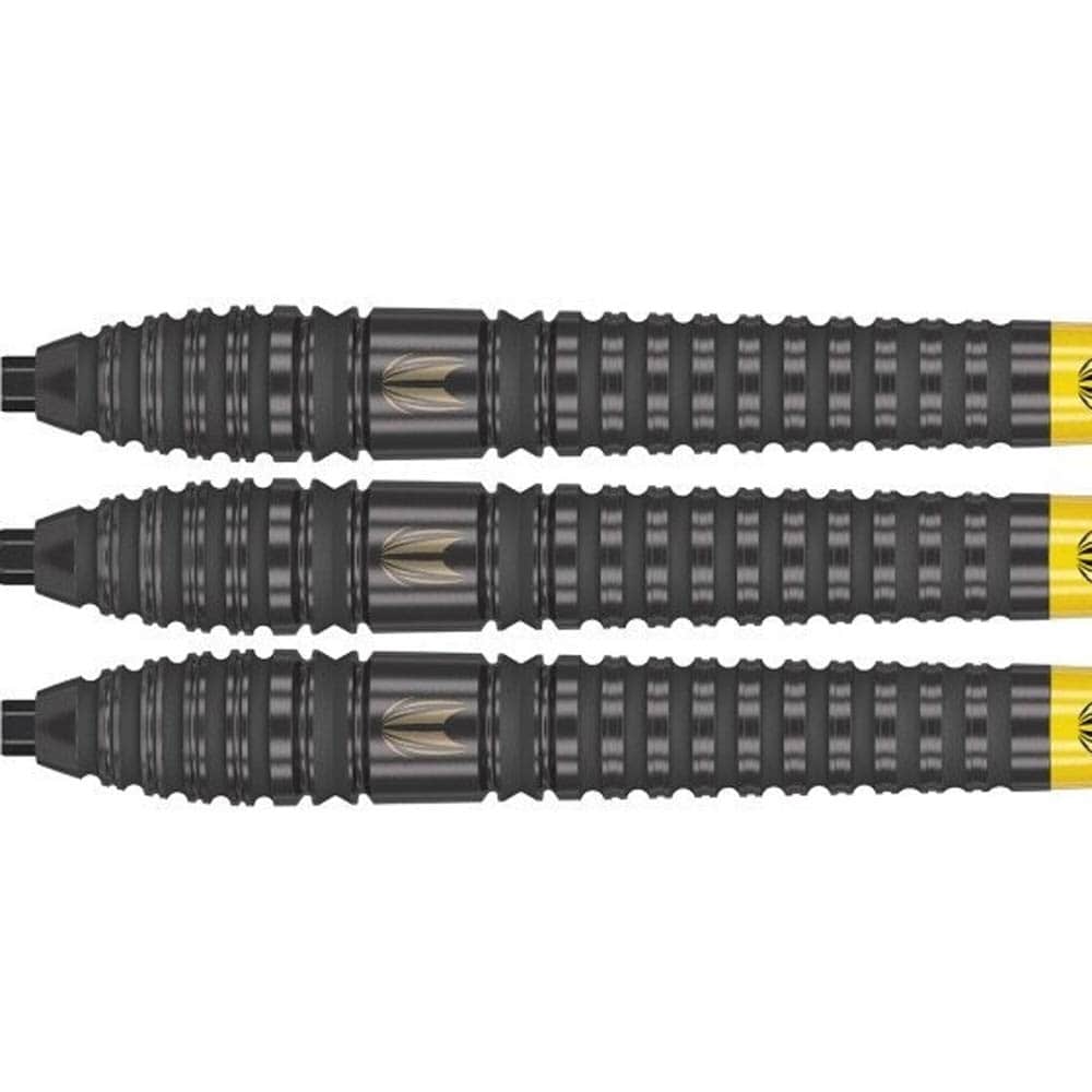 Con un impresionante revestimiento de titanio negro para una capa adicional de durabilidad y una estética mejorada, el agarre con ranuras radiales pulidas con chorro de arena permite un mayor control, brindándole la confianza para lanzar con precisión milimétrica. Diseñados para brindar precisión, los barriles 90% de tungsteno se complementan con los populares ejes Pro Grip y plumas Bolide Void edición No.6, y están terminados con las puntas suizas negras patentadas por Target para obtener un dardo completamente intercambiable.