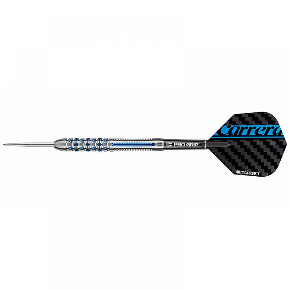 El dardo se compone por 1 set de 3 cuerpos Carrera Azzurri AZ02 21g, 1 set de 3 cañas pro grip y 1 set de plumas Carrera Sport Target.