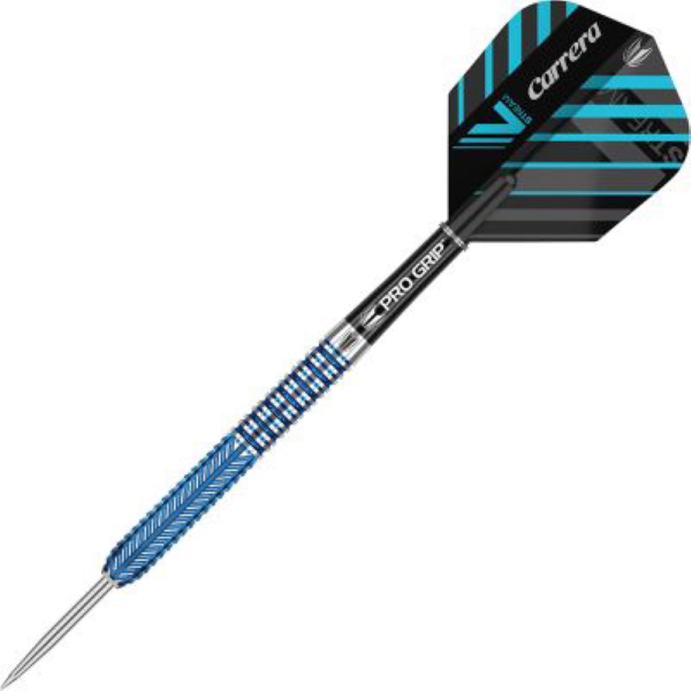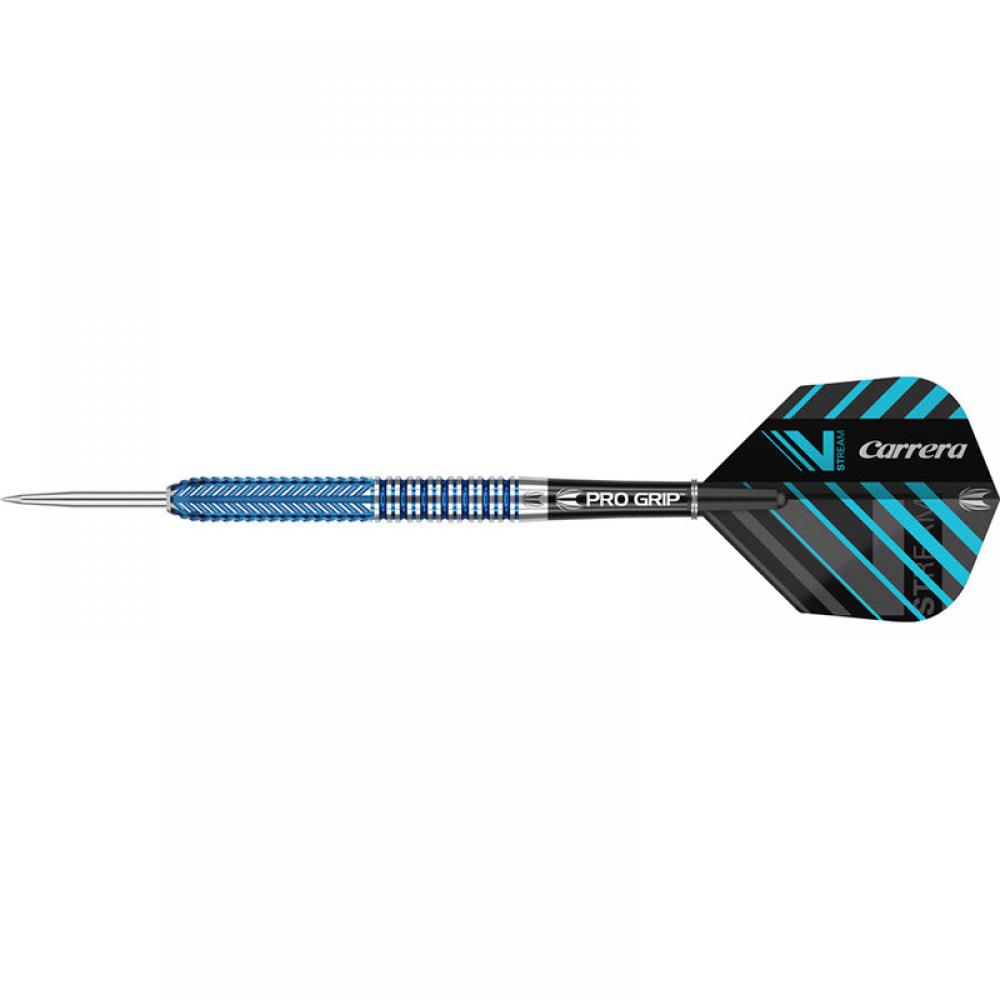 El producto se compone por 1 Juegos de Dardos Target Carrera Vstream V2(3 Barriles) 21g, 1 Juego de Cañas Target Pro Grip Azul (3 Cañas) y 1 Juego de Plumas Carrera (3 Plumas)