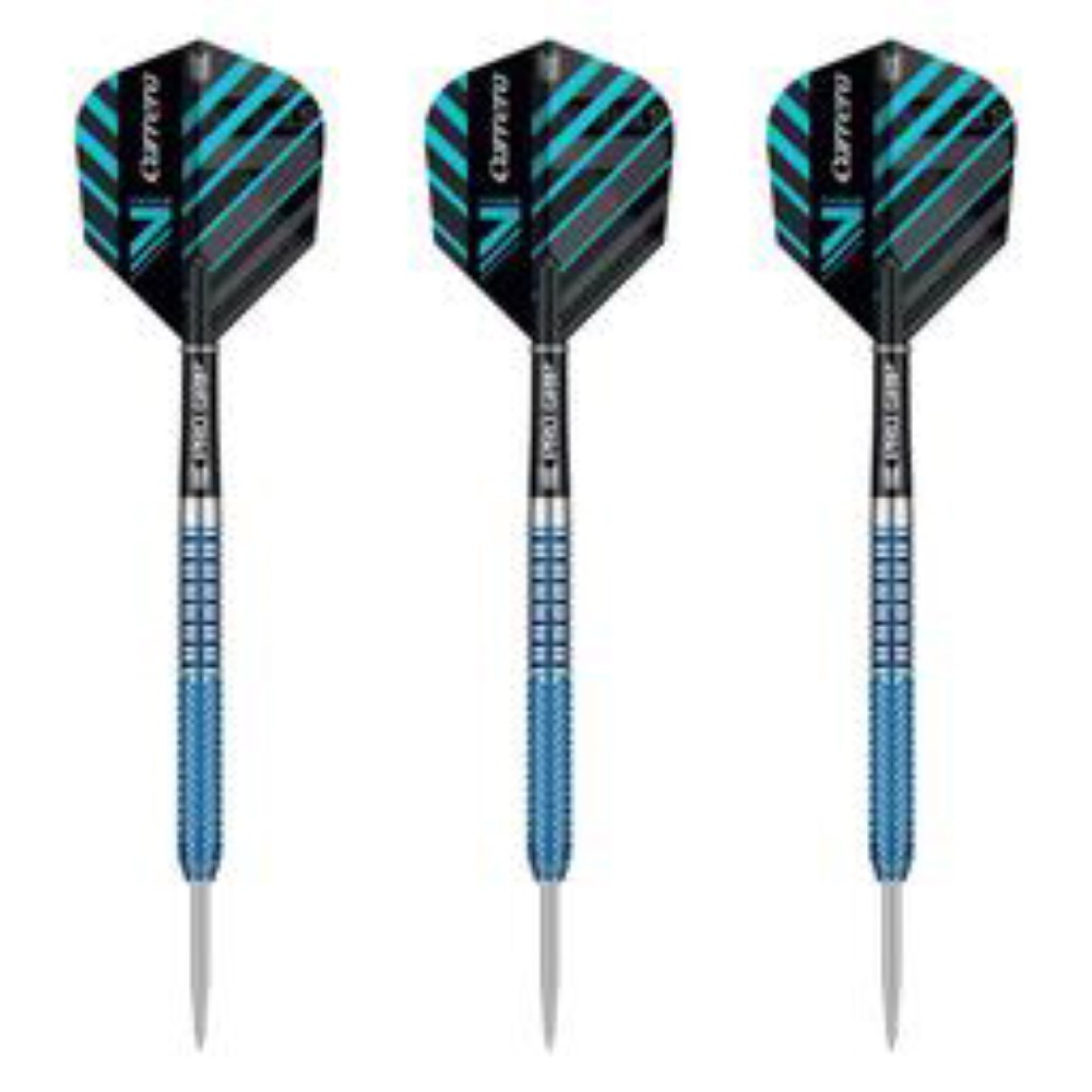 DESCRIPCIÓN:Juego de dardos fabricado por la marca Target Darts, dardos de la gama Vstream, calidad excepcional, diseño increíble y acabado de autentico lujo, este modelo es el Vstream V2 dispone de dos zonas de agarre diferente ambas acabadas con nitrito de titanio azul que le da un realce y belleza que rara vez vemos en un juego de dardos.