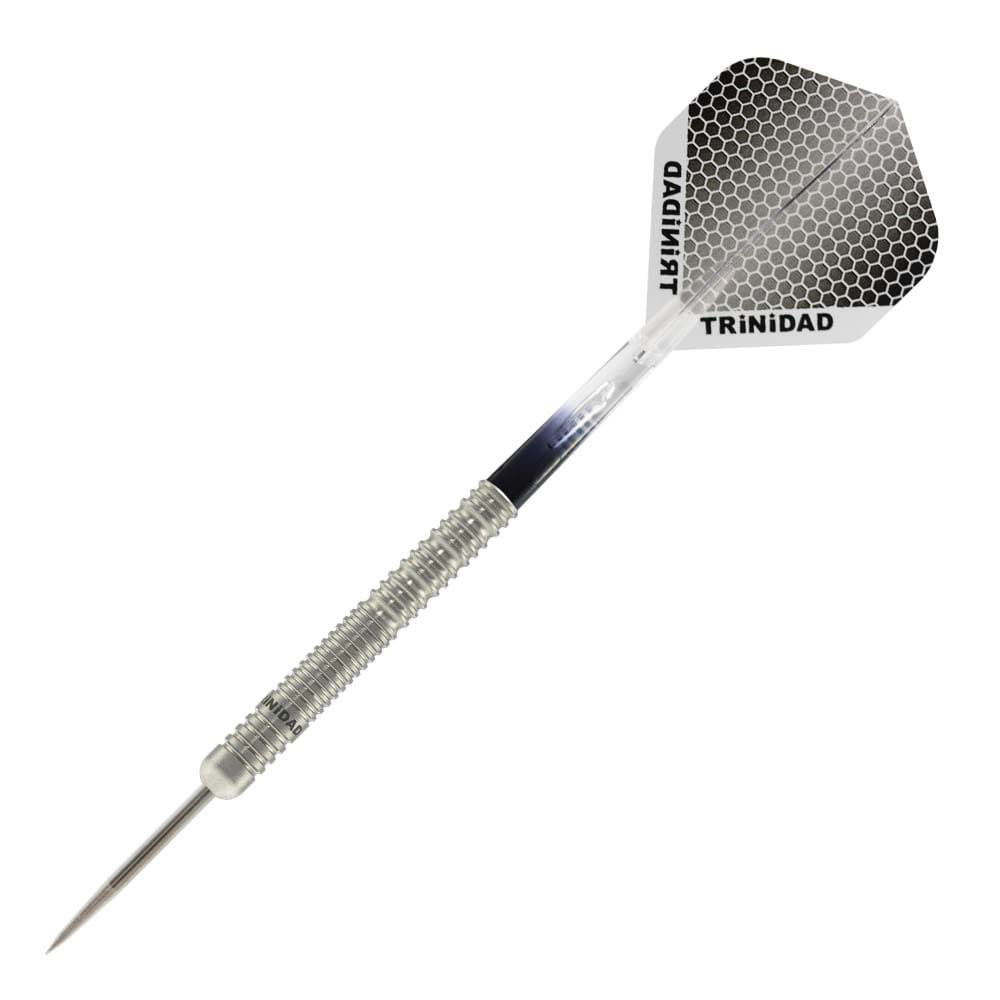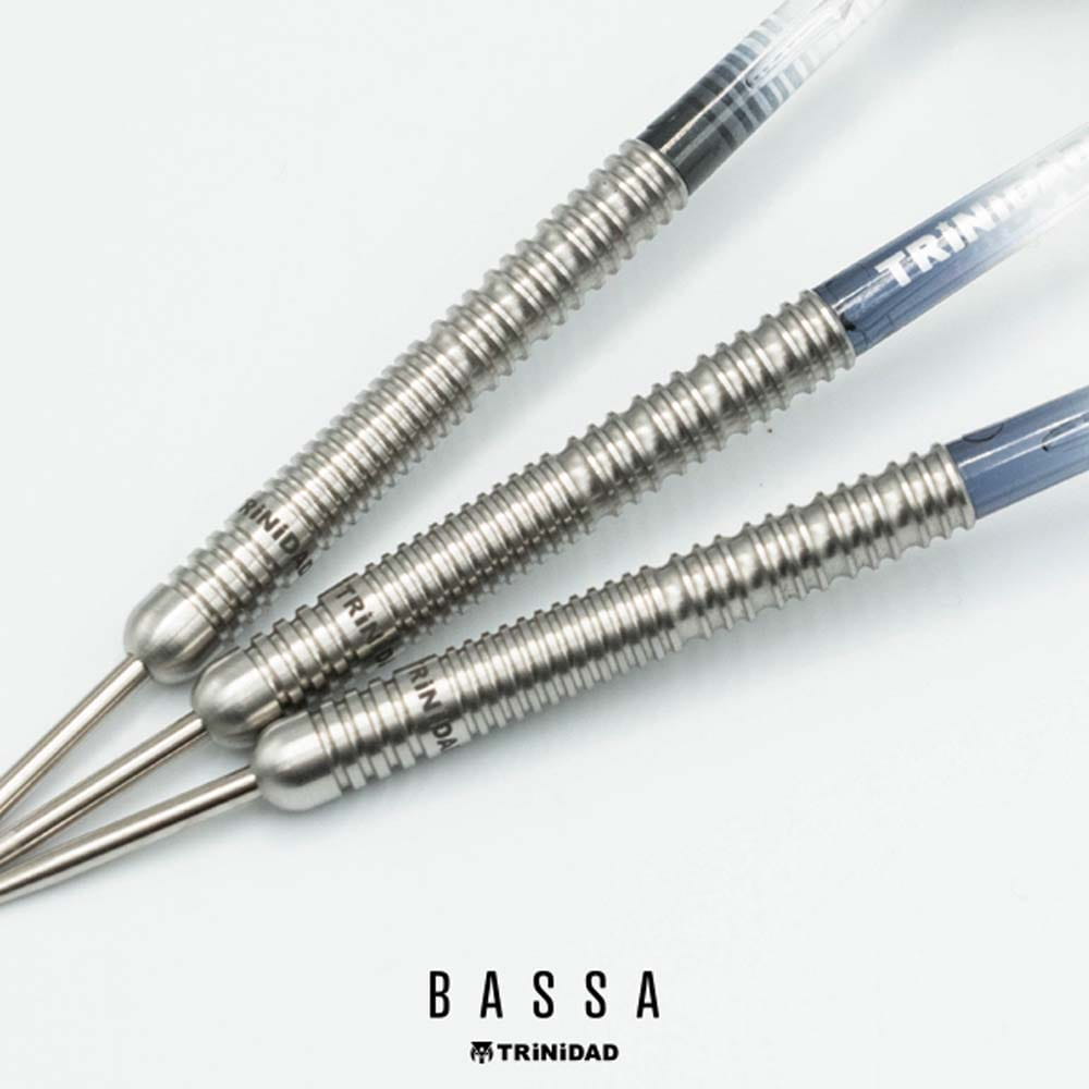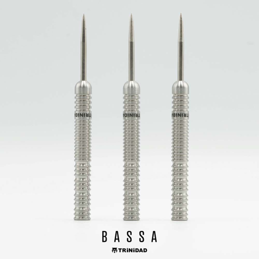 El juego de dardos Trinidad Darts Bassa se compone por 1 set de 3 cuerpos con punta de metal, 1 set de 3 plumas Trinidad y 1 set de 3 cañas Trinidad