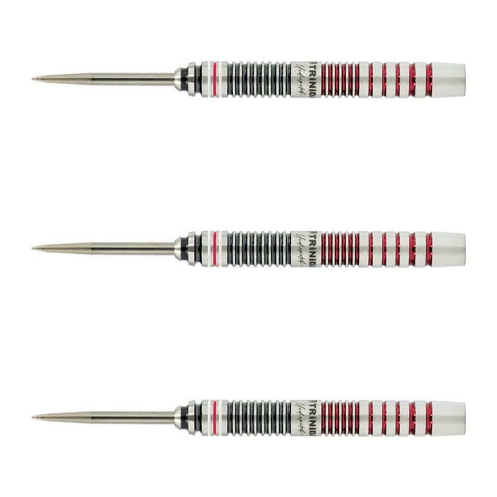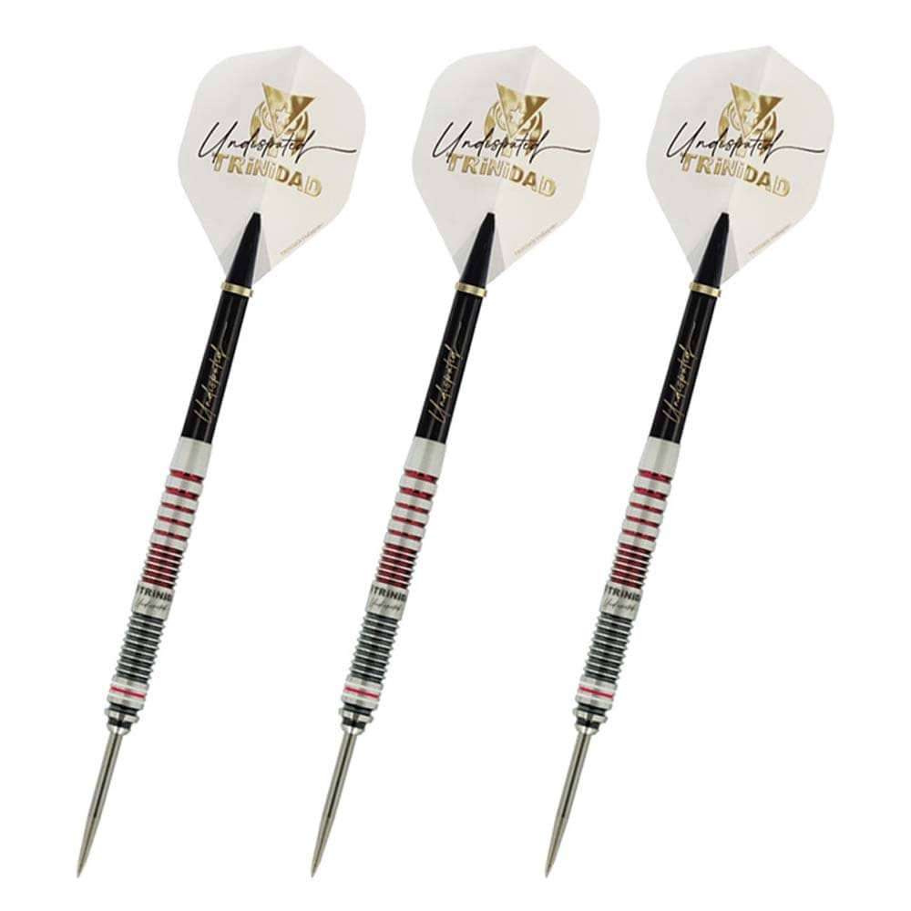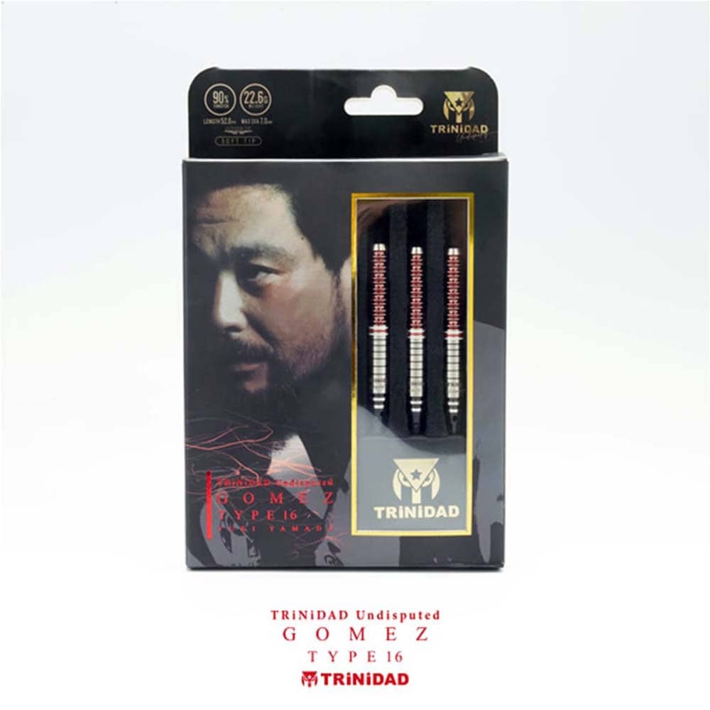 El juego de dardos se compone por 1 set de 3 cuerpos Gomez Type16 con punta de acero, 1 set de 3 plumas Trinidad y 1 set de 3 cañas Trinidad.
