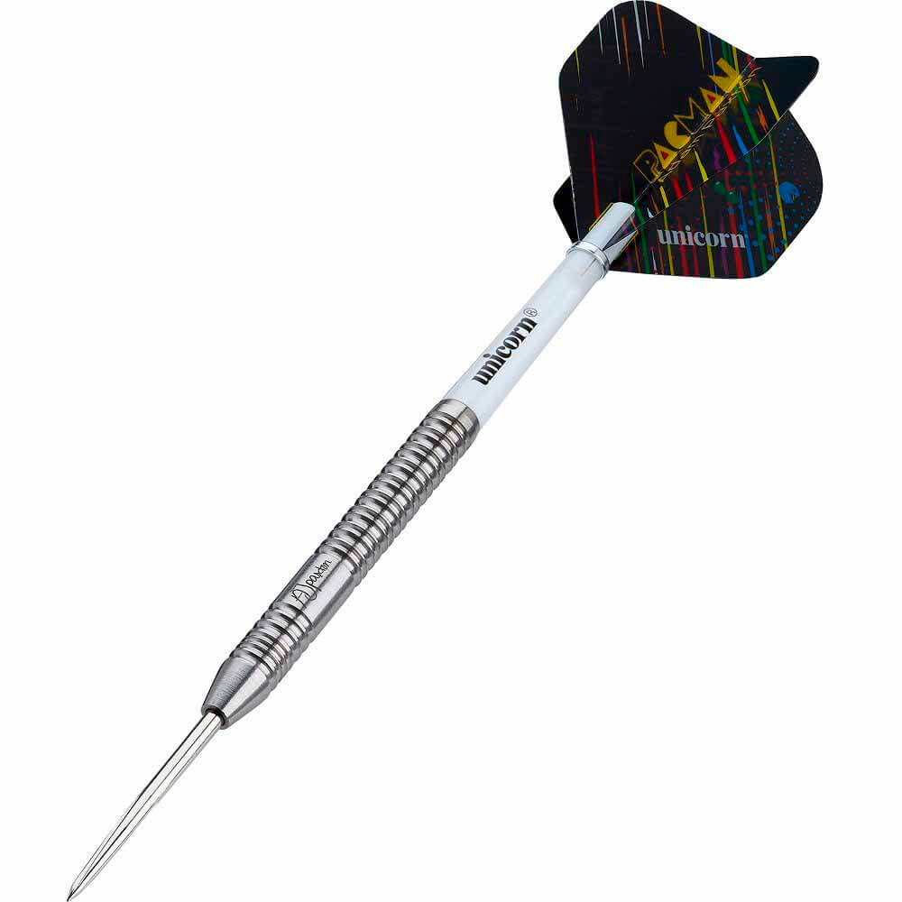 El juego de dardos Unicorn Adam Paxton se compone por 1 set de 3 cuerpos con punta de metal, 1 set de 3 cañas Unicorn y 1 set de 3 plumas