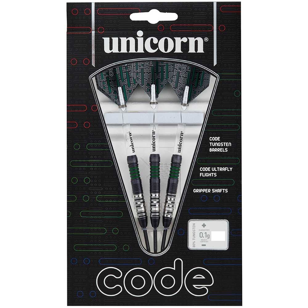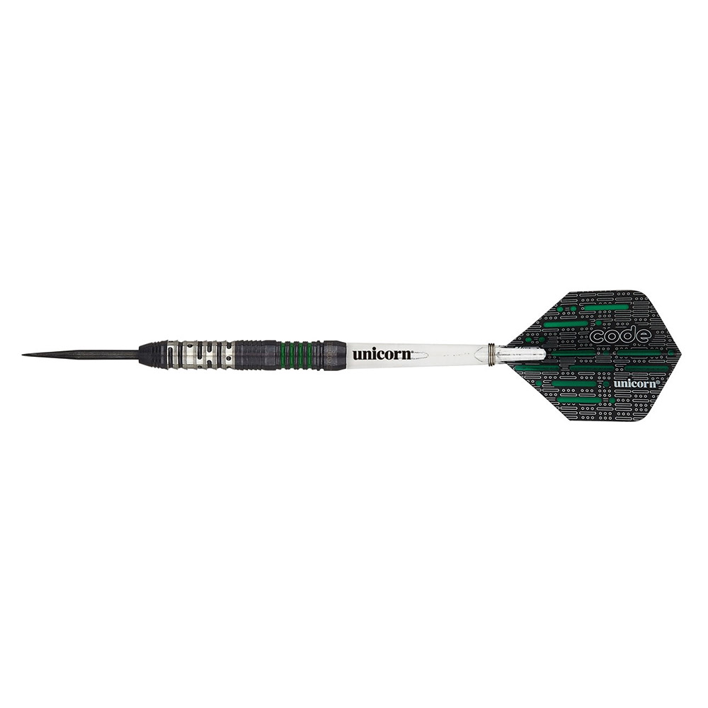 DESCRIPCIÓN:Dardo de gran calidad de la marca Unicorn Darts, dardos de la gama Code modelo Green, dardos con un cuerpo recto, con varios tipo de agarre que desde el punto de vista nuestro equipo técnico el tipo de agarre sera medio alto, es un dardo capaz de satisfacer a jugadores muy exigentes y de un buen nivel de juego.