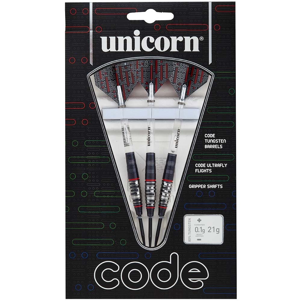 DESCRIPCIÓN:Dardo de gran calidad de la marca Unicorn Darts, dardos de la gama Code modelo Red, dardos con un tacto diferente los dardos Code tienen un barril muy trabajado, con un tacto especial y con varios tipos de agarre, con todo esto hacen de el un dardos muy equilibrado y capaz de agradar a jugador muy exigentes.