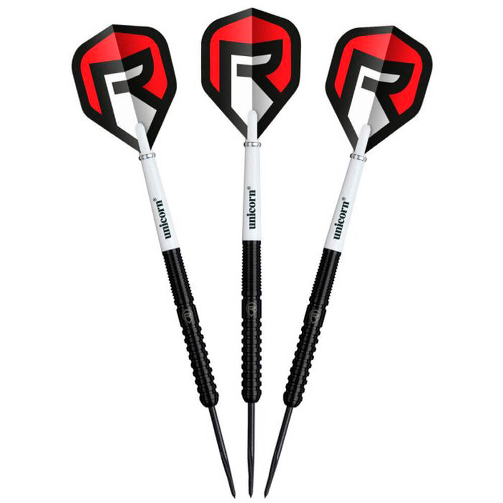 El juego de dardos Unicorn The Darts Referee Jack Langton se compone por 1 set de 3 cuerpos con punta de metal, 1 set de 3 cañas Unicorn y 1 set de 3 plumas