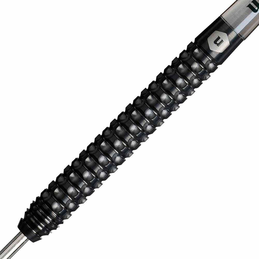 Los barriles, de 50,80 milímetros de largo y 6,60 milímetros de diámetro, están diseñados con una forma recta y un equilibrio centrado (centre weighted). Esto asegura que los dardos vuelen estables y lleguen exactamente donde quieres. El agarre milled a lo largo de todo el barril te proporciona un sujeción fiable sin ser agresivo, ideal para jugadores que prefieren un nivel de grip 4. La punta cónica con zona de agarre de anillos cortos aporta además una precisión extra al lanzar.