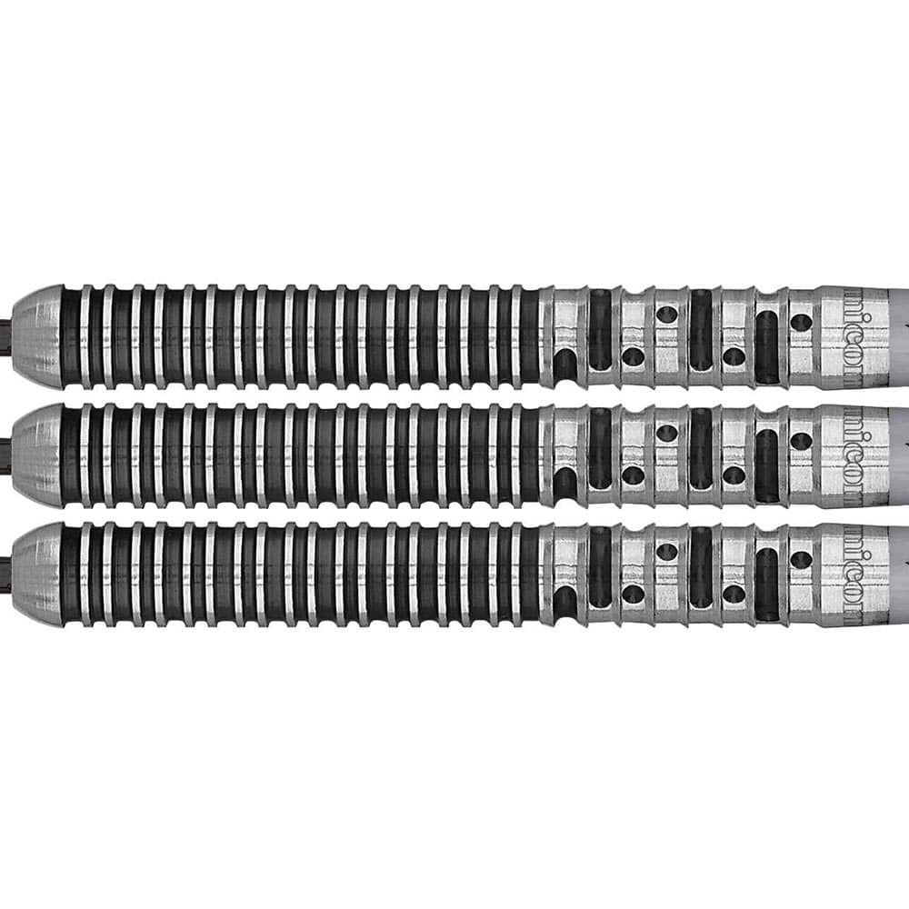 Dardos con un diseño de perfil paralelo y con 2 zonas de agarre que se adaptan a la perfección a todo tipo de jugadores, todo ello acabado en plata y negro.