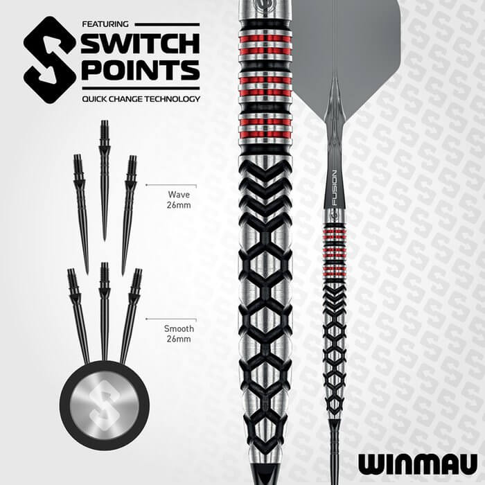 CARACTERÍSTICAS:Gracias a la tecnología Switch Point, estos dardos permiten cambiar las puntas de forma rápida y sencilla, adaptándose fácilmente a distintos estilos de juego y tipos de diana. Ya sea con puntas lisas o ranuradas, el sistema facilita una personalización total sin complicaciones.