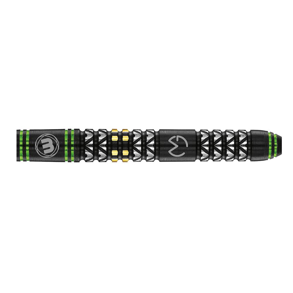 El producto se compone por 1 set de 3 cuerpos Michael Van Gerwen MvG Design Vantage, 1 set de 3 cañas Winmau y 1 set de 3 plumas de la serie MVG