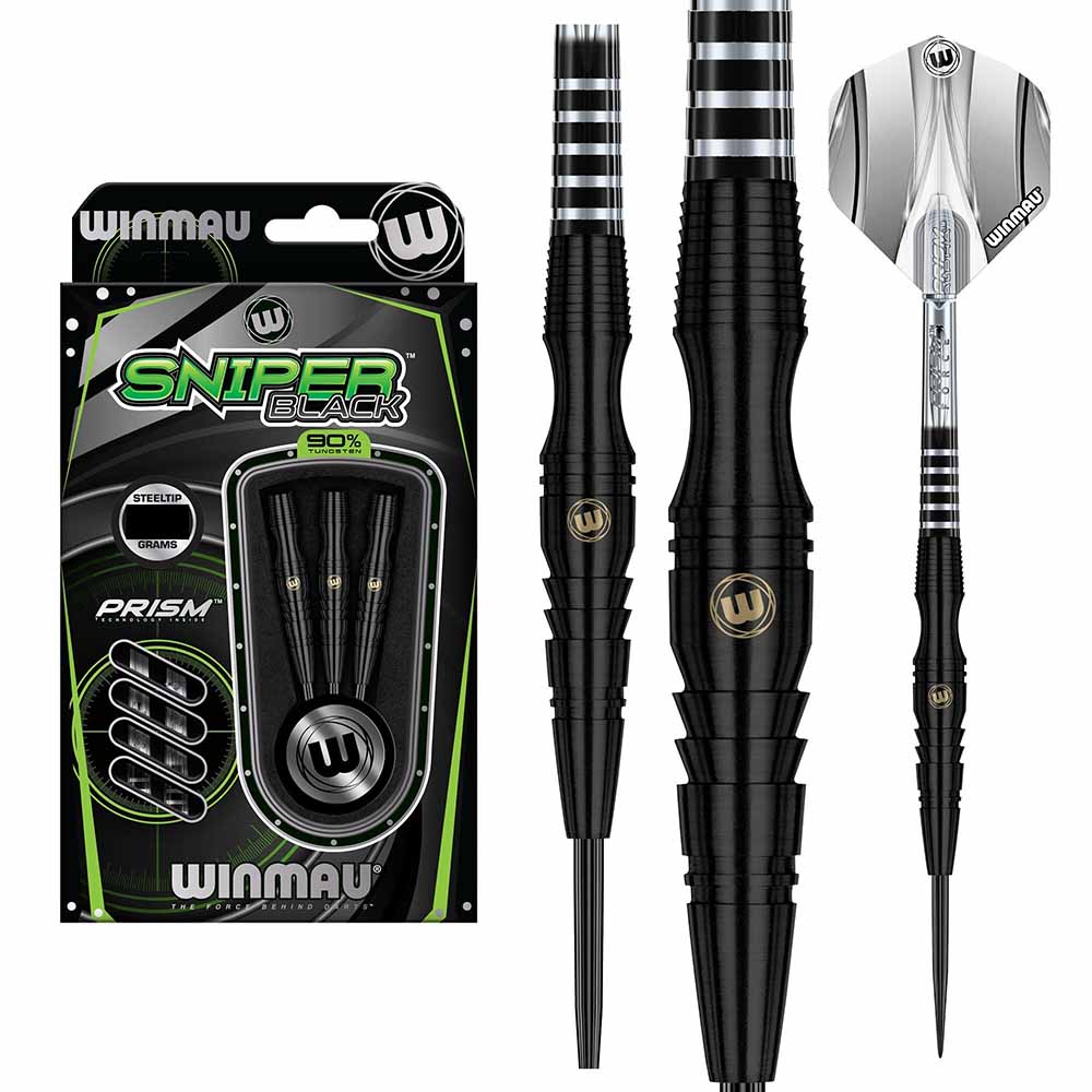 El juego de dardos Winmau Sniper Black 24g, se compone por 1 set de 3 cuerpos y 1 set de 3 cañas.