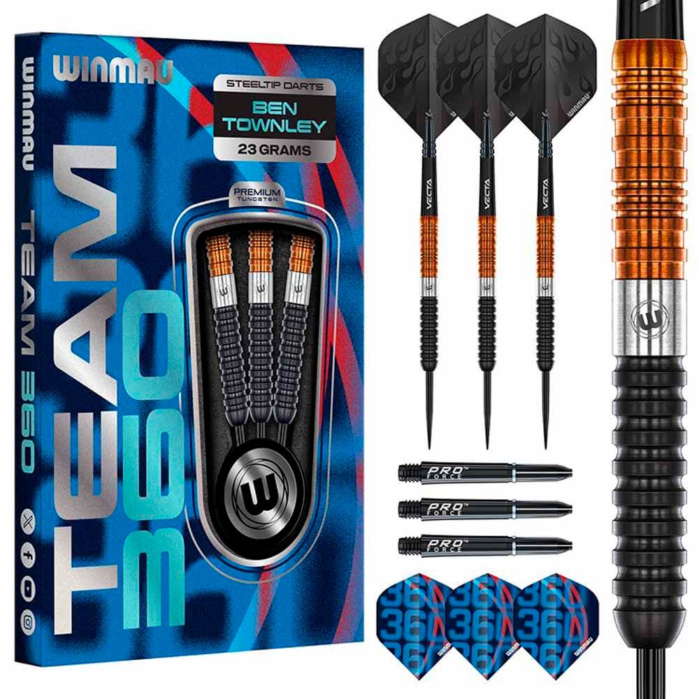 DESCRIPCIÓN:Dardos fabricados por Winmau Darts bajo el modelo Team 360 , dardos diseñados por el jugador Ben Townley con un 90% de tungsteno
